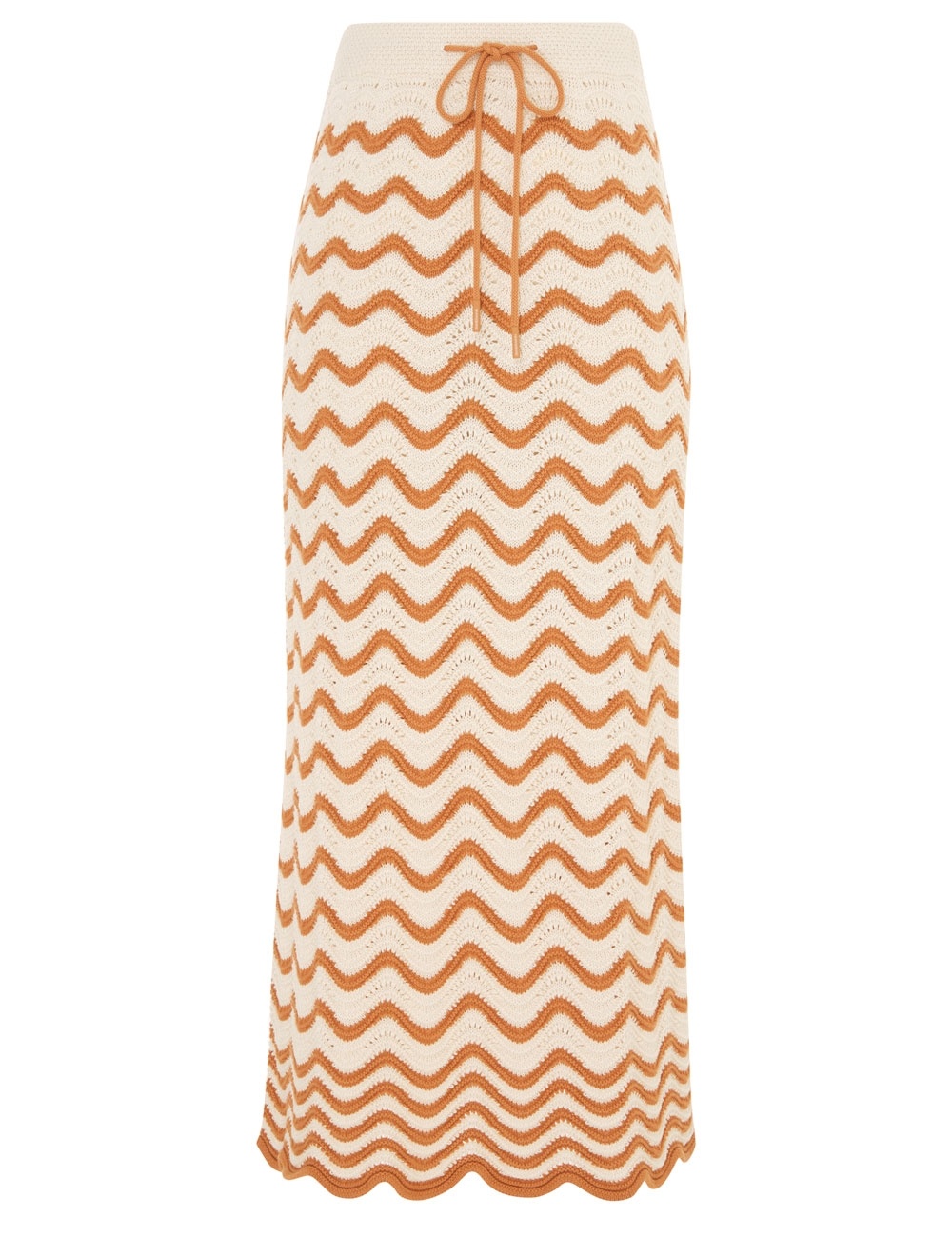 ITEM DETAILS The Junie Textured Knit Skirt in Tan/Cream from our Resort Swim 2024 Collection. A knitted midi skirt featuring a contrast wavy stripe. - Knit midi skirt - Elasticated waistband - Scalloped contrast hem Style Code: 8699SRS243 SIZE DETAILS 0P 0 1 2 3 Length 77 84 84 84 84 Waist 60 62 68 72 78 Hip 72 76 82 87 92 Elasticated waistband for an easy fit This garment fits true to size Available in size 0P, suited to clients who are under 5'3"/ 160cm Model is 5'7.5"/175 cm, bust size 32C/10C and wears a size 0 Item measurements have been rounded to the nearest cm. CARE INSTRUCTIONS 100% cotton Exclusive of trims Gentle cold hand wash separately with mild detergent Do not bleach Do not soak, wring or rub Do not tumble dry Dry flat inside out, away from direct sunlight Cool iron on reverse Store garment flat, do not hang Dry cleanable code f (hydrocarbon) Always check the garment care label for specific care instructions.