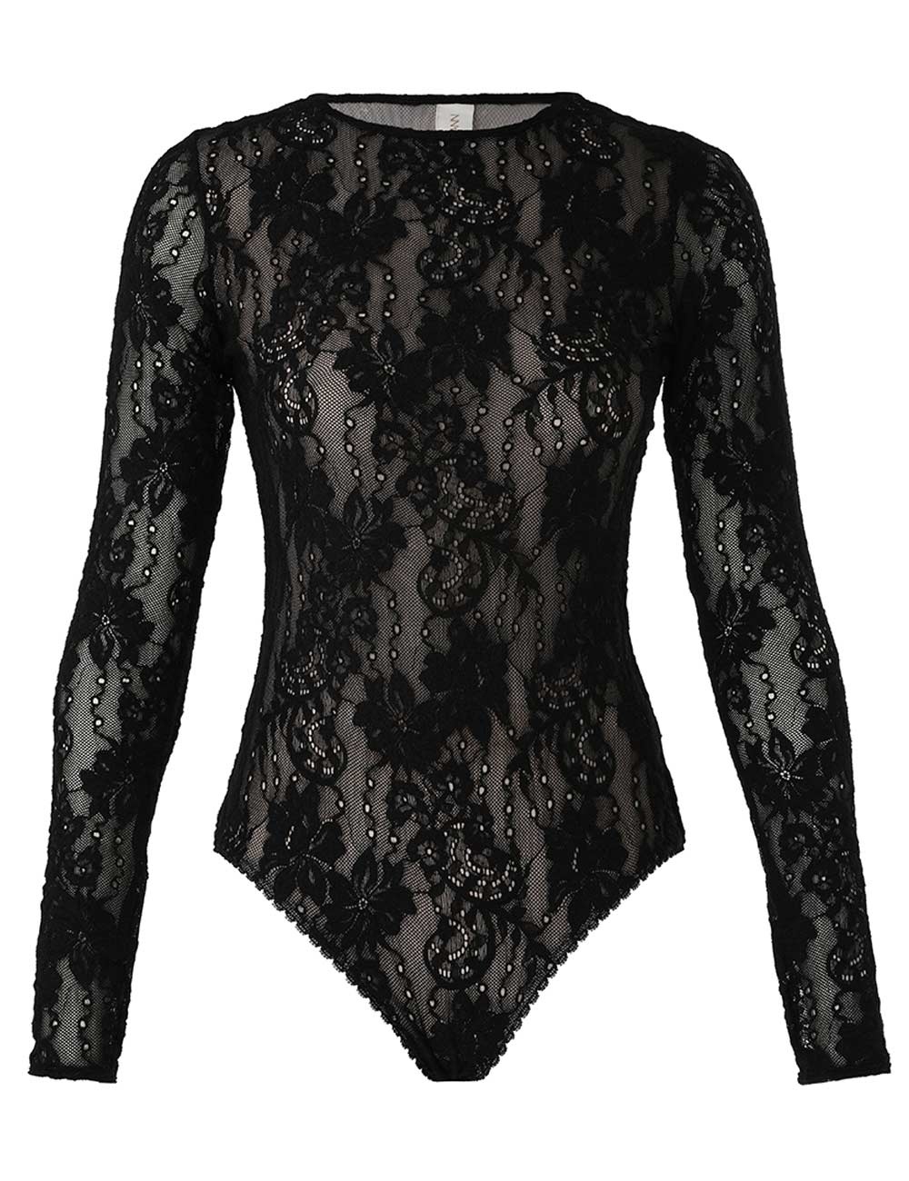 ITEM DETAILS The Lace Bodysuit in Black from our Spring 2024 Collection, Natura. A lace bodysuit featuring a crew neck and long sleeves. - Stretch lace - Gusset snap fastening - Mesh lining Style Code: 8622WRS24 SIZE DETAILS 0P 0 1 2 3 Length 66 67 69 71 72 Bust 76 80 86 90 96 Hip 78 84 88 94 98 Sleeve 62 62 63 63 63 Stretch lace for a flexible fit This garment fits true to size Available in size 0P, suited to clients who are under 5'3"/ 160cm Model is 5'9.5"/178 cm, bust size 32C/10C and wears a size 0 Item measurements have been rounded to the nearest cm CARE INSTRUCTIONS Main: 88% nylon 12% spandex Mesh lining: 85% polyester 15% elastane Exclusive of trims Dry clean code f (hydrocarbon) with protective bag Do not iron Light steam only Do not spot clean Turn garment inside out before dry cleaning Hand washable Always check the care label for specific care instructions.