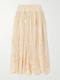 Part of the label's 'Hypnotic' Fall '25 collection, Zimmermann's maxi skirt highlights the brand's romantic influences. It's made from lace detailed with subtle flocked polka-dots and gathered to create volume. The lining tempers the sheerness of the fabric. Size & Fit - 00 (petite) = UK 6/ US 2/ FR 34 (under 5’3”/ 160cm) - 0 = UK 8/ US 4/ FR 36 - 1 = UK 10/ US 6/ FR 38 - 2 = UK 12/ US 8/ FR 40 - 3 = UK 14/ US 10/ FR 42 - 4 = UK 16/ US 12/ FR 44 - Fits true to size, take your normal size - Ankle length, designed to be worn just below the natural waist - Mid-weight, non-stretchy fabric - Model is 175cm/ 5'9" and is wearing the designer's size 0 Model measurements: - Bust: 81cm/ 32" - Waist: 62cm/ 24.5" - Hip: 89cm/ 35" Details & Care - Cream lace - Concealed zip fastening along back - 100% polyester; lining: 100% viscose - Fully lined - Dry clean
