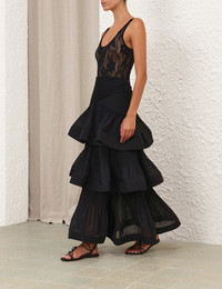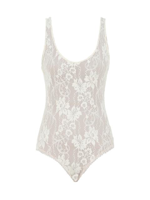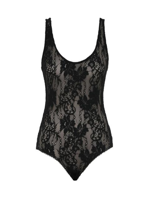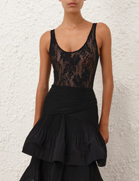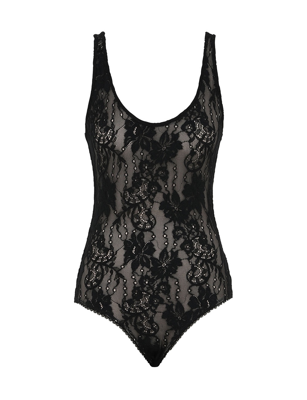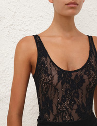 ITEM DETAILS The Lace Scoop Body Suit in Black from our Spring 2025 Collection, Illumination. A lace bodysuit featuring mesh lining, with a scoop neckline and back. - Stretch lace bodysuit - Mesh lining - Scoop neckline and back - Fixed straps - Slip on style Style Code: 1190TS25R SIZE DETAILS 0P 0 1 2 3 4 Length 37 41 42 42 43 44 Bust 68 73 78 84 88 94 Waist 56 60 64 70 74 80 Stretch lace for a flexible fit This garment fits true to size Model is 5'9.5"/178 cm, bust size 32C/10C and wears a size 0 Item measurements have been rounded to the nearest cm CARE INSTRUCTIONS Main: 88% nylon, 12% spandex, lining: 81% polyester, 19% spandex Gentle cold hand wash separately with mild detergent Remove any detachable trims prior to cleaning Cover to protect trim; Do not soak, rub or wring Do not bleach Do not tumble dry Dry in shade Do not iron Do not spot clean Dry cleanable code f (hydrocarbon only) Always check the label or care card for specific care instructions.