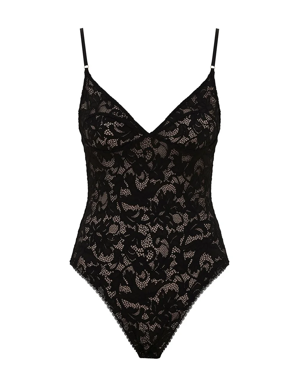 ITEM DETAILS The Lace Sleeveless Bodysuit in Black from our Spring 2026 Collection, Kindred Spirit. A stretch bodysuit featuring a plunging V-neckline, adjustable straps and all-over lace detailing. - Sleeveless bodysuit - V-neckline and back - Mock wire detailing at the bust - Adjustable straps for flexible fit - Gusset snap fastening - Mesh lining Style Code: 7829TS26R SIZE DETAILS 0 1 2 3 4 Length 19.5 19.5 20 20.5 21 Waist 23.5 26 27.5 30 31.5 Hip 29 30.5 33 35.5 37 Stretch lace for a flexible fit Light-weight, stretchy fabric This garment fits true to size Model is 5'10.5"/179 cm, bust size 34C/12C and wears a size 0 Item measurements are in inches CARE INSTRUCTIONS Main: 90% polyamide, 10% elastane; lining: 81% polyester, 19% elastane Gentle cold hand wash separately with mild detergent Remove any detachable trims prior to cleaning Cover to protect trim; Do not soak, rub or wring Do not bleach Do not tumble dry Dry in shade Do not iron Do not spot clean Dry cleanable code f (hydrocarbon only) Always check the label or care card for specific care instructions.