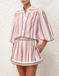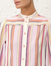 ITEM DETAILS The Lexi Blouson Stripe Shirt in Multi Stripe from our Resort Swim 2024 Collection. A cotton long sleeve shirt featuring a stripe placement print. - Long sleeve fitted shirt - Self covered buttons - Elasticated sleeve cuff Style Code: 8871TRS245 SIZE DETAILS 0P 0 1 2 3 Length 58 61.5 62 63 63 Bust 94 99 104 109 114 Waist 92 95 100 105 110 Sleeve 52 55 55 56 56 Fitted This garment fits true to size Available in size 0P, suited to clients who are under 5'3"/ 160cm Model is 5'9.5"/178 cm, bust size 32C/10C and wears a size 0 Item measurements have been rounded to the nearest cm. CARE INSTRUCTIONS Main: 100% cotton Contrast: 100% cotton Exclusive of trims Dry clean only code p with protective bag Cool iron on reverse Do not spot clean Always check the garment care label for specific care instructions.