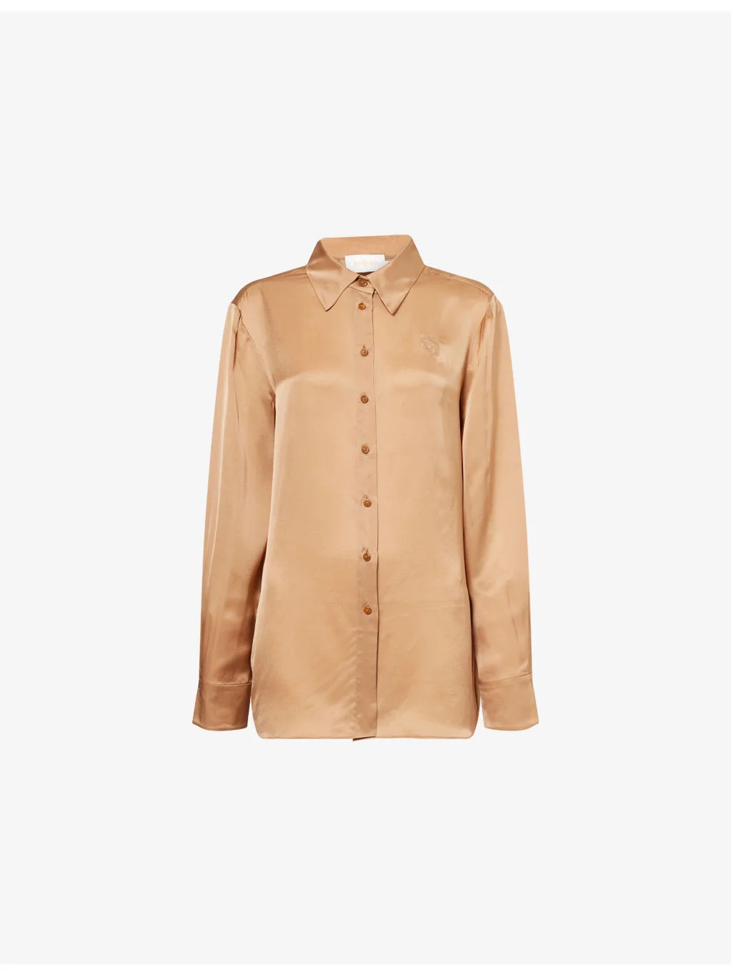 PRODUCT DETAILS - ZIMMERMANN Silk Shirt - 100% silk - Button fastening - Relaxed fit, classic collar, long sleeves, button cuffs, logo embroidery at chest - Dry clean only - True to size - Size small: length 28in /71.1cm - Model is 5ft 10in/1.78m and wears a size small - Lightweight, non-stretch Ref: R04504508