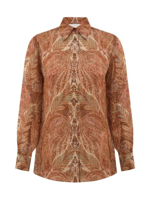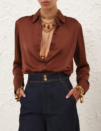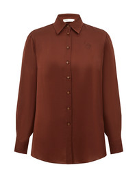 ITEM DETAILS The Hypnotic Satin Shirt in Tan from our Fall 2025 Collection, Hypnotic. A silk shirt featuring long sleeves, embroidery detailing and a classic collar. - 100% silk fabric - Relaxed silhouette style shirt - Buttons down the centre front and on the cuffs - Embroidery detail on the breast - Gathers on sleeves into cuffs - Pleat detail at back yoke Runway: This style was featured on the F25 Runway. Style Code: 5747TF251 SIZE DETAILS 0P 0 1 2 3 4 Length 25.5 27.5 27.5 28 28.5 28.5 Bust 41 42.5 45 46.5 49 50.5 Sleeve 20 21.5 21.5 22 22 22.5 Designed for a relaxed fit This garment fits true to size Available in size 0P, suited to clients who are under 5'3"/ 160cm Model is 5'9.5"/178 cm, bust size 32C/10C and wears a size 0 Item measurements are in inches CARE INSTRUCTIONS Main: 100% silk Dry clean only code f (hydrocarbon only); Remove any detachable trims prior to dry cleaning; Cover to protect trim; Cool iron with protective cloth; Light steam only; Do not spot clean Always check the label or care card for specific care instructions.