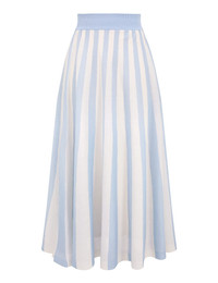ITEM DETAILS The Lucky Contrast Stripe Skirt in Light Blue Stripe from our Summer Swim 2025 Collection. A knit midi skirt featuring a gathered elasticated waistband and an A-line silhouette. - Knit midi skirt - Elasticated waistband - Soft A-line silhouette - Slip on style - Partially lined Style Code: 3392SSS252 SIZE DETAILS 0P 0 1 2 3 Length 30.5 33.5 33.5 33.5 33.5 Waist 19 19.5 22 24.5 26 Designed with an elasticated waistband for a flexible fit This garment fits true to size Available in size 0P, suited to clients who are under 5'3"/ 160cm Model is 5'9.5"/178 cm, bust size 32C/10C and wears a size 0 Item measurements are in inches CARE INSTRUCTIONS Main :70% viscose 30% polyester waist band : 43% viscose 35% polyamide 19% polyester 3% elastane lining : 78% viscose 22% polyamide Gentle cold hand wash separately with mild detergent Remove any detachable trims prior to cleaning Cover to protect trim Do not soak, rub or wring Do not bleach Do not tumble dry Dry flat in shade Cool iron with protective cloth Do not spot clean Store garment flat do not hang Dry cleanable code f (hydrocarbon only) Always check the label or care card for specific care instructions.