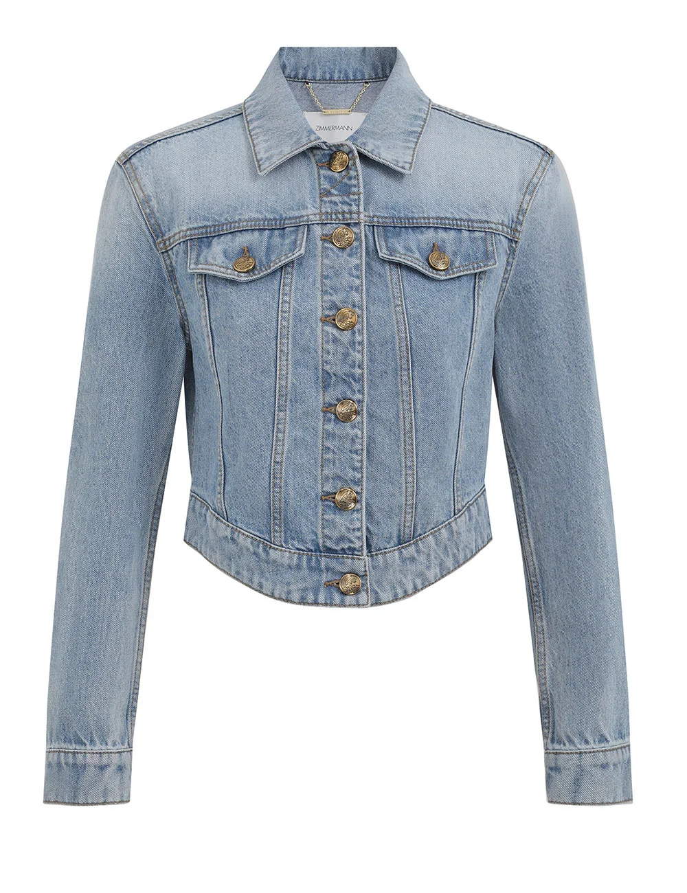 ITEM DETAILS The Lucky Fitted Denim Jacket in Skylark from our Summer Swim 2025 Collection. A denim jacket featuring a fitted, cropped silhouette with buttons down the centre front and a curved hem and shorter back. - Denim fitted jacket with cropped back - Long sleeves with buttoned cuffs - Classic collar - Buttons down the centre front - Patch pockets Style Code: 3073JSS252 SIZE DETAILS 0P 0 1 2 3 Length 15.5 16.5 17 17.5 17.5 Bust 32.5 34 36 38.5 40 Sleeve 22 23 23 23 23 Designed to be fitted across the shoulders and sleeves Due to the nature of the non-stretchy fabric, this area may feel restrictive This garment fits true to size Available in size 0P, suited to clients who are under 5'3"/ 160cm Model is 5'9.5"/178 cm, bust size 32C/10C and wears a size 0 Item measurements are in inches CARE INSTRUCTIONS 100% cotton Gentle cold machine wash separately with mild detergent; Remove any detachable trims prior to cleaning Cover to protect trim; Do not soak or bleach; Do not tumble dry; Dry in shade without delay; Cool iron with protective cloth; Do not spot clean; Dry cleanable code p Always check the label or care card for specific care instructions.