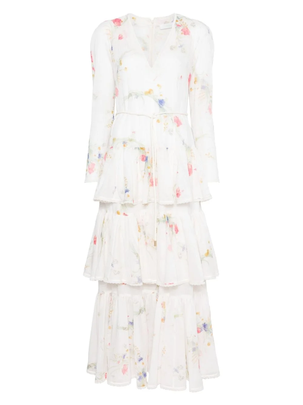 Lucky maxi dress Highlights - Light beige - Concealed rear zip fastening - Tied waist - Layered details - Ruffled detailing Imported Composition Lining: Recycled Polyester 86%, Elastane 14% Outer: Cotton 100% SIZE & FIT Model measurements Height 5 ft 10 in(1.78 m) Bust/Chest 31.49 in(80 cm) Hips 37 in(94 cm) Waist 23.62 in(60 cm) FittingInformation Designed for a close fit at the chest and waist with a loose fit at the hip The internal slip sits just away from the body, offering a close yet comfortable fit Made from a midweight non-stretch fabric Washing instructions Dry Clean Only
