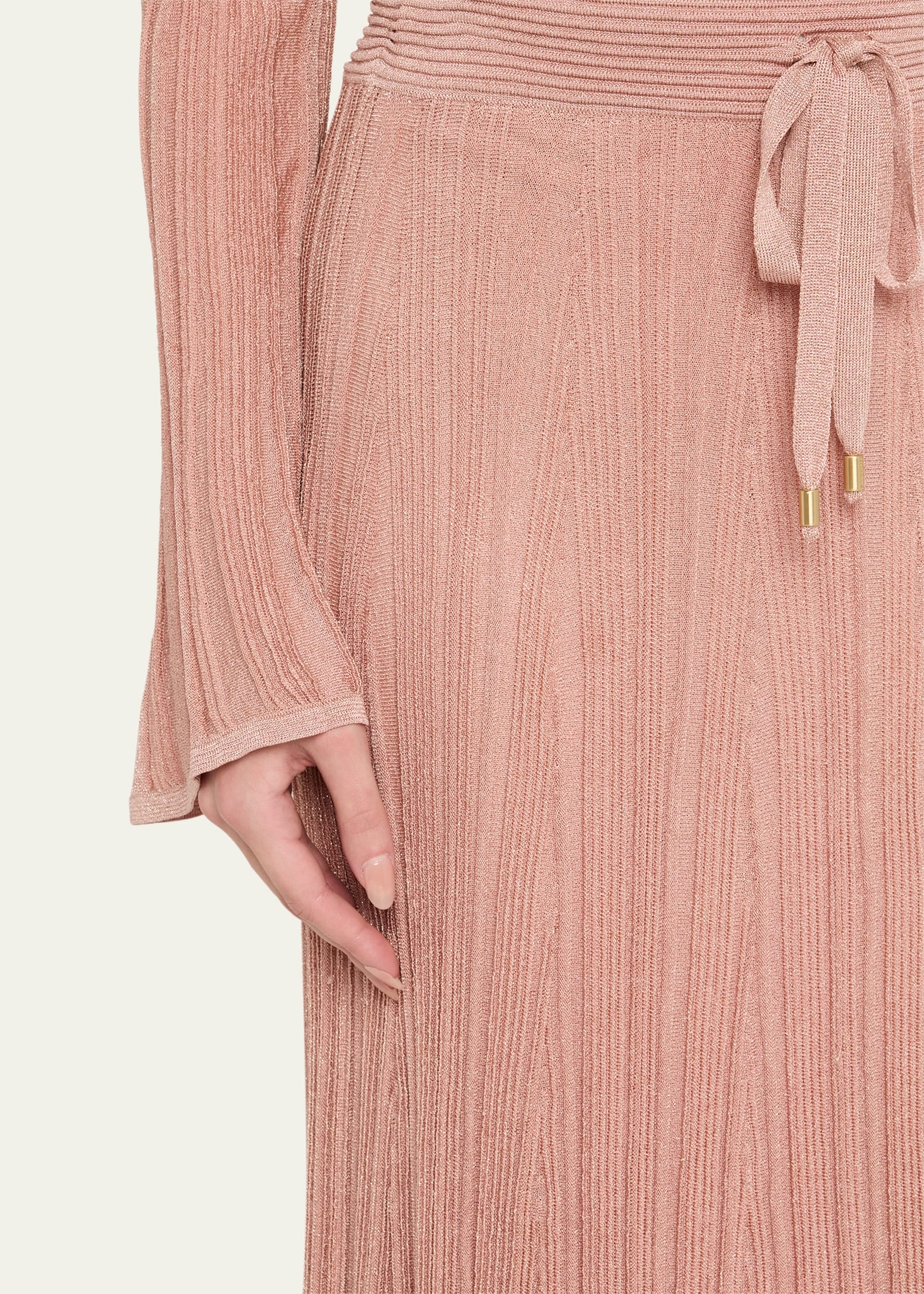 Zimmermann "Lucky" ribbed metallix maxi skirt High rise Elastic drawstring waistband Column silhouette Full length Pull-on style Viscose/metallic fibers Lining: Viscose Imported Size conversion: 0 = X-Small, 1 = Small, 2 = Medium, 3 = Large Online Inquiries: BGS21_T6LRQ| Store Inquiries: #5008823