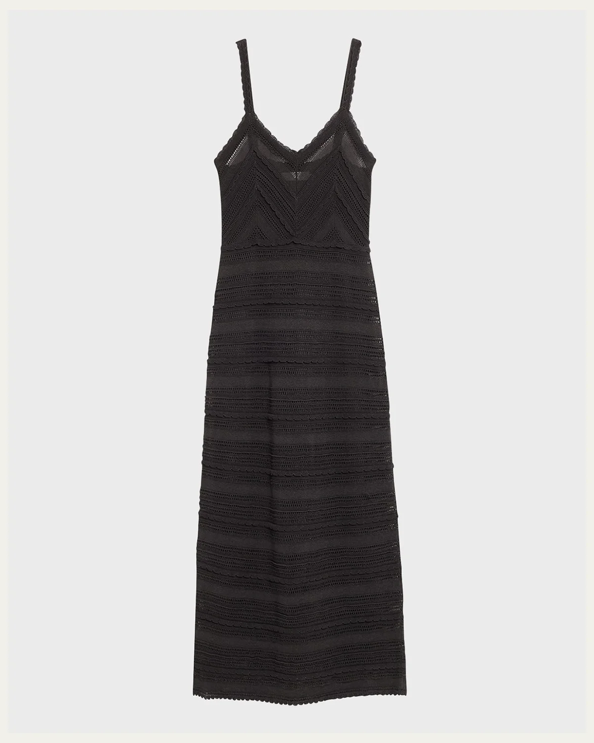 Zimmermann "Lucky" lace knit maxi dress finished with scalloped trim Scoop neckline Sleeveless Column silhouette Hem falls below the knee Slipover style Polyester Unlined Imported