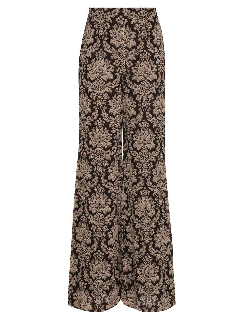 ITEM DETAILS The Luminosity Flare Pant in Black Damask from our Fall 2023 Collection, Luminosity. A high waisted, wide leg pant featuring a flared silhouette. - Flare pant - High waisted - Invisible zip closure Style Code: 8064PF231 SIZE DETAILS 0P 0 1 2 3 4 Length 104 115 116 117 117 118 Waist 66 68 74 80 84 90 Hip 86 90 96 102 106 112 Inseam 77 86 86 86 86 86 Fixed high waist Relaxed through legs This garment fits true to size Available in size 0P, suited to clients who are under 5'3"/ 160cm Model is 5'9.5"/178 cm, bust size 32C/10C and wears a size 0 Item measurements have been rounded to the nearest cm. CARE INSTRUCTIONS Main: 100% Viscose Exclusive of trims Dry clean only code f with protective bag Cool iron with protective cloth Light steam only Do not spot clean Turn garment inside out before dry cleaning Always check the garment care label for specific care instructions.