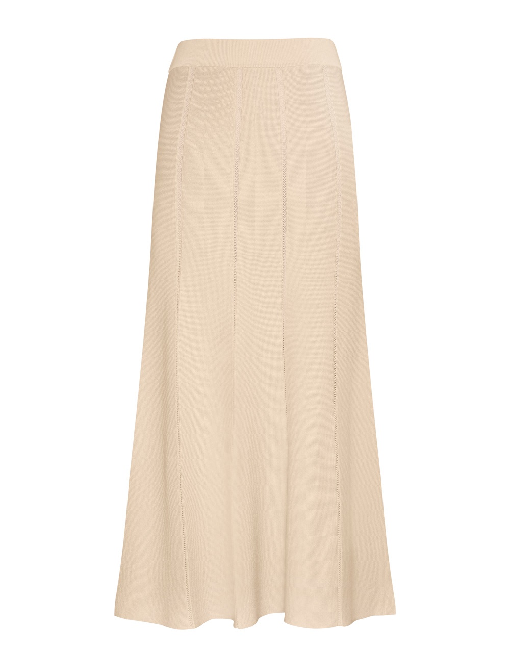 ITEM DETAILS The Luminosity Knit Panelled Skirt in Cream from our Fall 2023 Collection, Luminosity. A knitted skirt featuring an elastic waist and a pointelle stitch detail throughout. - Knitted mini dress - A-line midi skirt - Tubular finish along edges - Slip on style Style Code: 8014SF231 SIZE DETAILS 0P 0 1 2 3 Length 74 81 81 81 81 Waist 58 62 66 72 78 Hip 76 82 86 92 98 Elastic waist for an flexible fit A-line fit through hips and legs This garment fits true to size Available in size 0P, suited to clients who are under 5'3"/ 160cm Model is 5'9.5"/178 cm, bust size 32C/10C and wears a size 0 Item measurements have been rounded to the nearest cm. CARE INSTRUCTIONS 78% viscose 22% polyamide Exclusive of trims Gentle hand wash separately with mild detergent Do not bleach Do not soak, wring or rub Do not tumble dry Dry flat inside out, away from direct sunlight Cool iron on reverse Store garment flat, do not hang Dry cleanable code f Always check the garment care label for specific care instructions.