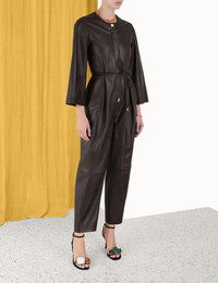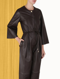 ITEM DETAILS The Luminosity Leather Jumpsuit in Espresso from our Fall 2023 Collection, Luminosity. A leather long sleeve jumpsuit featuring a crew neck and straight legs, finished with a self tie waist. - Leather jumpsuit - Full length - Side welt pockets - Snap button closures - Removable leather cord belt Style Code: 8121UF231 SIZE DETAILS 0P 0 1 2 3 Bust 80 86 90 96 100 Waist 72 78 82 88 92 Hip 114 120 124 130 134 Inseam 70 75 75 75 75 Sleeve 52 54 54 55 55 Straight fit throughout This garment fits true to size Available in size 0P, suited to clients who are under 5'3"/ 160cm Model is 5'9.5"/178 cm, bust size 32C/10C and wears a size 0 Item measurements have been rounded to the nearest cm. CARE INSTRUCTIONS Main: genuine lamb leather Exclusive of trims Clean professionally by a specialist leather and suede expert Do not wash Do not bleach Do not tumble dry or iron Do not spot clean or dry clean Avoid water Due to the nature of this garment, colour may transfer onto clothing, accessories or furnishings Always check the garment care label for specific care instructions.