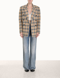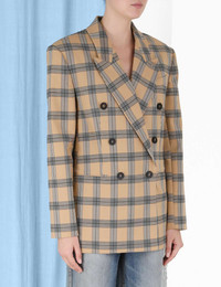 ITEM DETAILS The Luminosity Oversized Jacket in Tan Check from our Fall 2023 Collection, Luminosity. A longline jacket featuring shoulder pads and a double breasted closure. - Oversized, longline jacket - Garden wool check - Three front pockets - Wadding through sleeves - Branded lining Style Code: 8126JF231 SIZE DETAILS 0P 0 1 2 3 Length 71 76 76 77 78 Bust 100 104 110 114 120 Waist 96 100 106 110 116 Hip 98 102 108 112 118 Sleeve 59 63 64 64 65 Oversized, boxy fit This garment fits true to size Available in size 0P, suited to clients who are under 5'3"/ 160cm Model is 5'9.5"/178 cm, bust size 32C/10C and wears a size 0 Item measurements have been rounded to the nearest cm. CARE INSTRUCTIONS Main: 51% polyester 44% wool 5% elastane Exclusive of trims Dry clean only code f with protective bag Cool iron with protective cloth Do not spot clean Cover and protect hardware Turn garment inside out before dry cleaning Always check the garment care label for specific care instructions.