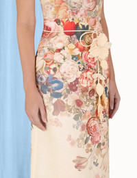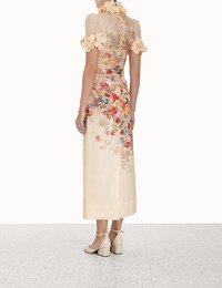 ITEM DETAILS The Luminosity Pencil Skirt in Morisot Cream Print from our Fall 2023 Collection, Luminosity. A linen midi skirt featuring a removable floral belt. - Linen midi skirt - Invisible zip at centre back - Blind hem - Lined Style Code: 5906SF231 SIZE DETAILS 0P 0 1 2 3 4 Length 84 92 92 92 92 92 Waist 66 68 74 78 84 88 Hip 90 94 100 104 110 116 Fitted high waist Straight fit through hips and legs This garment fits true to size Available in size 0P, suited to clients who are under 5'3"/ 160cm Model is 5'9.5"/178 cm, bust size 32C/10C and wears a size 0 Item measurements have been rounded to the nearest cm. CARE INSTRUCTIONS Main: 100% linen Exclusive of trims Dry clean only code f with protective bag Cool iron with protective cloth Light steam only Do not spot clean Turn garment inside out before dry cleaning Always check the garment care label for specific care instructions.