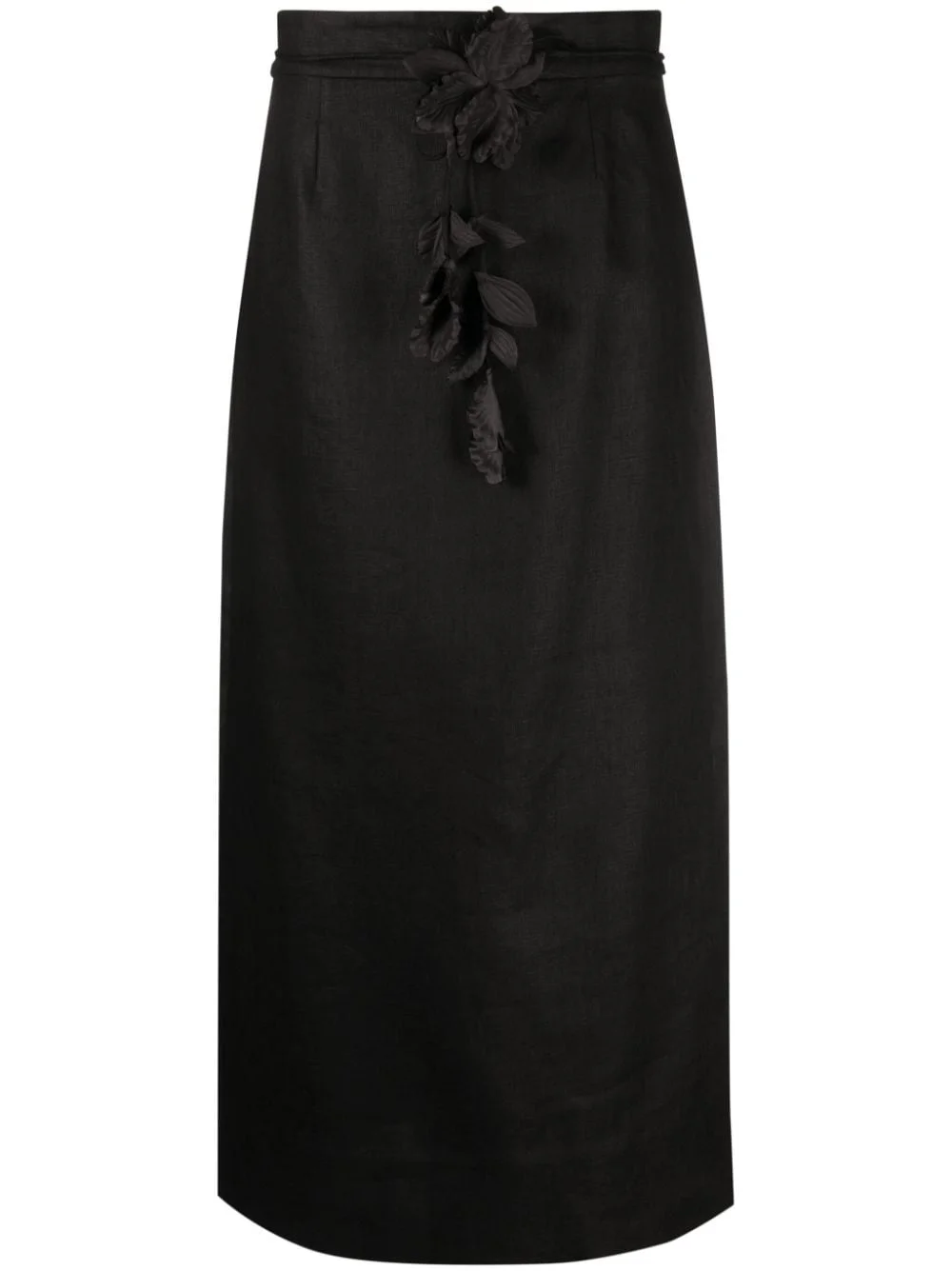 Luminosity pencil midi skirt ZIMMERMANN’s AW23 'Luminosity' collection celebrates the brand's signature romantic aesthetic. Capturing that sentiment, this pencil skirt is crafted from soft linen and detailed with a detachable floral belt. Highlights - Black - Linen/flax - Cotton lining - Detachable floral waist belt - Concealed rear zip fastening - Straight hem - Mid-length Imported Composition Outer: Linen/Flax 100% Lining: Cotton 100% SIZE & FIT Model measurements Height 5 ft 10 in(1.78 m) Bust/Chest 31.49 in(80 cm) Hips 35.03 in(89 cm) Waist 23.62 in(60 cm) FittingInformation This midi-length skirt is intended to be worn just below the waist Made from a midweight non-stretch fabric This piece fits true to size – take your usual size