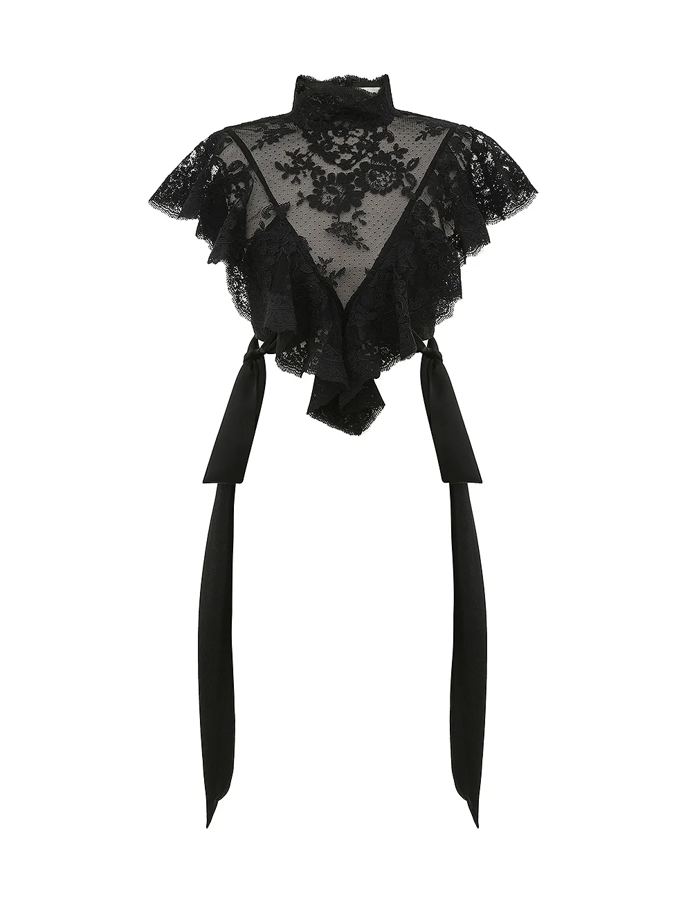 ITEM DETAILS The Luna Lace Bodice in Black from our Spring 2026 Collection, Kindred Spirit. A lace bodice featuring ruffle detailing and decorative side bow ties. - Centre back invisible zip closure - Side bodice panel with additional side zip - Lace trim applique around collar and frills Style Code: 6170TS261 SIZE DETAILS 0P 0 1 2 3 4 Length 12 12 12.5 12.5 13 13.5 Bust 31.5 33 35.5 37 39.5 41 Under bust 26 27.5 30 31.5 33 35.5 Designed to be slightly fitted at the bust This garment fits true to size Available in size 0P, suited to clients who are under 5'3"/ 160cm Model is 5'9.5"/178 cm, bust size 32C/10C and wears a size 0 Item measurements are in inches CARE INSTRUCTIONS Main: 100% polyester; lining: 100% silk; tie: 100% silk Dry clean only code f (hydrocarbon only); Remove any detachable trims prior to dry cleaning; Cover to protect trim; Iron in low temperature with protective cloth; Light steam only; Do not spot clean Always check the label or care card for specific care instructions.