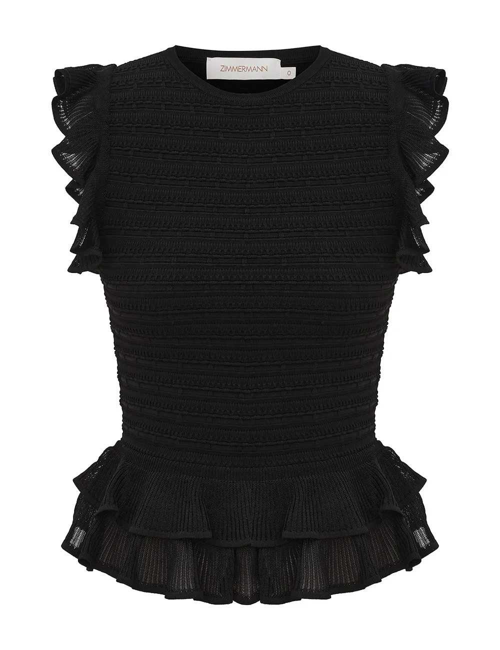 ITEM DETAILS The Luna Lace Frill Halter Top in Black from our Spring 2026 Collection, Kindred Spirit. A knit top featuring a high crew neckline, ribbing throughout and frill trim on the armholes and hem. - Sleeveless knit top - Frilled edges - Ribbed bodice Style Code: 8809TS261 SIZE DETAILS 0P 0 1 2 3 4 Length 17.5 19 19.5 19.5 19.5 20 Bust 27 29 31.5 33 35.5 37 Waist 23 24.5 27 29 30.5 33 Designed for a regular fit Heavy-weight, stretchy fabric This garment fits true to size Available in size 0P, suited to clients who are under 5'3"/ 160cm Model is 5'9.5"/178 cm, bust size 32C/10C and wears a size 0 Item measurements are in inches CARE INSTRUCTIONS 75% viscose, 24% polyamide,1% polyester Dry clean only code f (hydrocarbon only); Remove any detachable trims prior to dry cleaning; Cover to protect trim; Iron in low temperature with protective cloth; Do not spot clean; Store garment flat do not hang Always check the label or care card for specific care instructions.