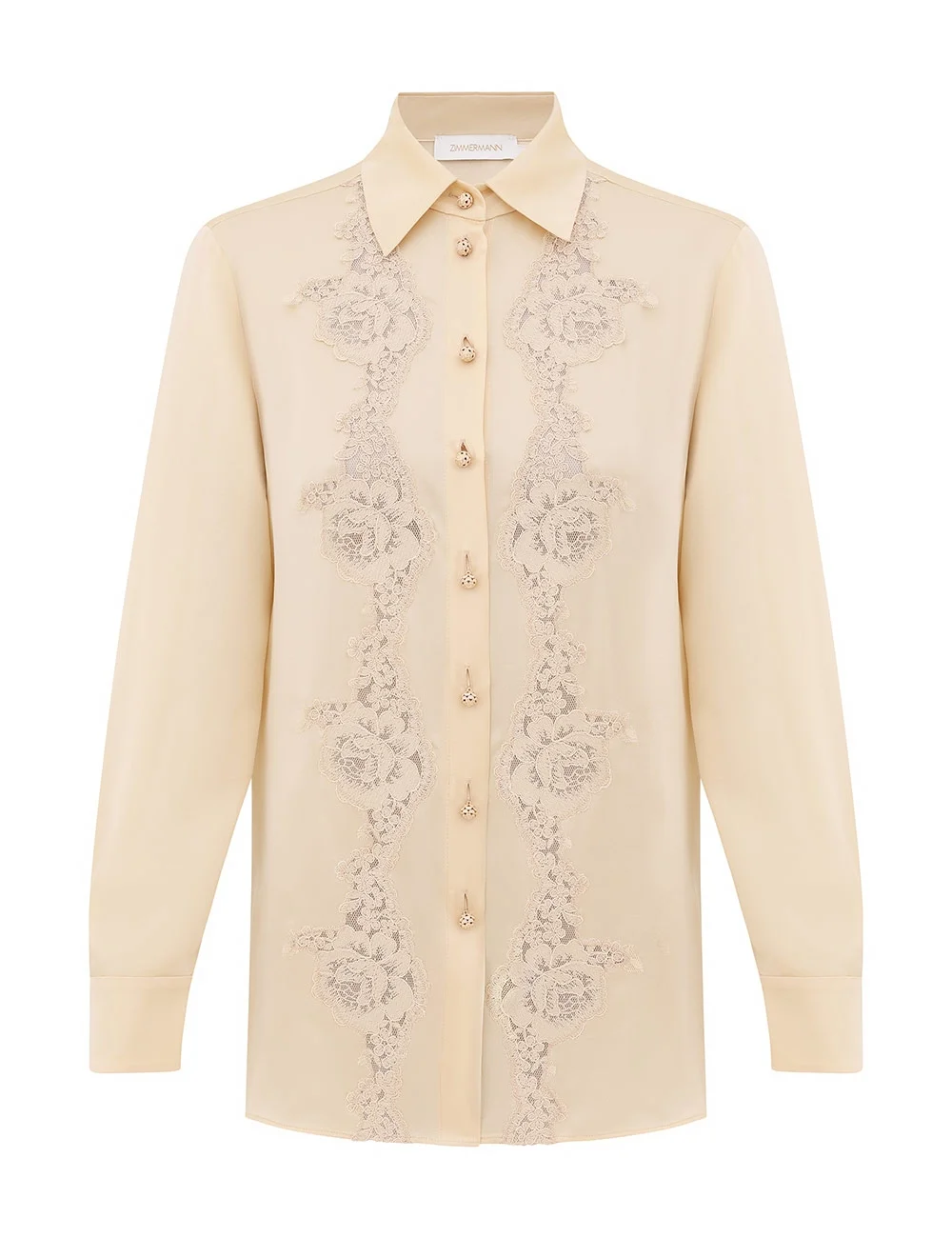 ITEM DETAILS The Luna Lace Shirt in Cream from our Spring 2026 Collection, Kindred Spirit. A silk shirt featuring a classic collar, centre front buttons, finished with fitted, buttoned cuffs and lace detailing at the centre front. - Silk fabric - Relaxed style shirt - Embroidered lace detailing through centre front - Fitted cuffs with buttons Style Code: 8033TS261 SIZE DETAILS 0P 0 1 2 3 4 Length 26 27.5 27.5 28 28.5 28.5 Bust 41 42.5 45 46.5 49 50.5 Sleeve 20 21.5 21.5 22 22 22.5 Relaxed fit Light-weight, non-stretchy fabric This garment fits true to size Available in size 0P, suited to clients who are under 5'3"/ 160cm Model is 5'9.5"/178 cm, bust size 32C/10C and wears a size 0 Item measurements are in inches CARE INSTRUCTIONS Main: 100% silk; lace: 100% polyester Dry clean only code f (hydrocarbon only); Remove any detachable trims prior to dry cleaning; Cover to protect trim; Iron in low temperature with protective cloth; Light steam only; Do not spot clean Always check the label or care card for specific care instructions.