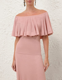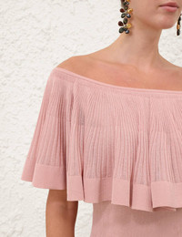 ITEM DETAILS The Luna Pleated Frill Top in Dusty Pink from our Spring 2026 Collection, Kindred Spirit. A knit top featuring a layered frill detail across the bust and back. - Fitted knit top - Asymmetric frill overlay across bust and back - Elongated bodice - Slip on style - Style can be worn to cover and expose shoulders Style Code: 3071TS261 SIZE DETAILS 0P 0 1 2 3 4 Length 20 21.5 21.5 21.5 22 22 Bust 23.5 25 27.5 30 31.5 34 Waist 19.5 22 24.5 26 28.5 30 Elasticated neckline for a flexible fit Heavy-weight, stretchy fabric This garment fits true to size Available in size 0P, suited to clients who are under 5'3"/ 160cm Model is 5'9.5"/178 cm, bust size 32C/10C and wears a size 0 Item measurements are in inches CARE INSTRUCTIONS Main: 52% viscose, 24% polyester, 20% polyamide, 4% elastane; contrast: 69% viscose, 31% polyester Dry clean only code f (hydrocarbon only); Remove any detachable trims prior to dry cleaning; Cover to protect trim; Iron in low temperature with protective cloth; Do not spot clean; Store garment flat do not hang Always check the label or care card for specific care instructions.