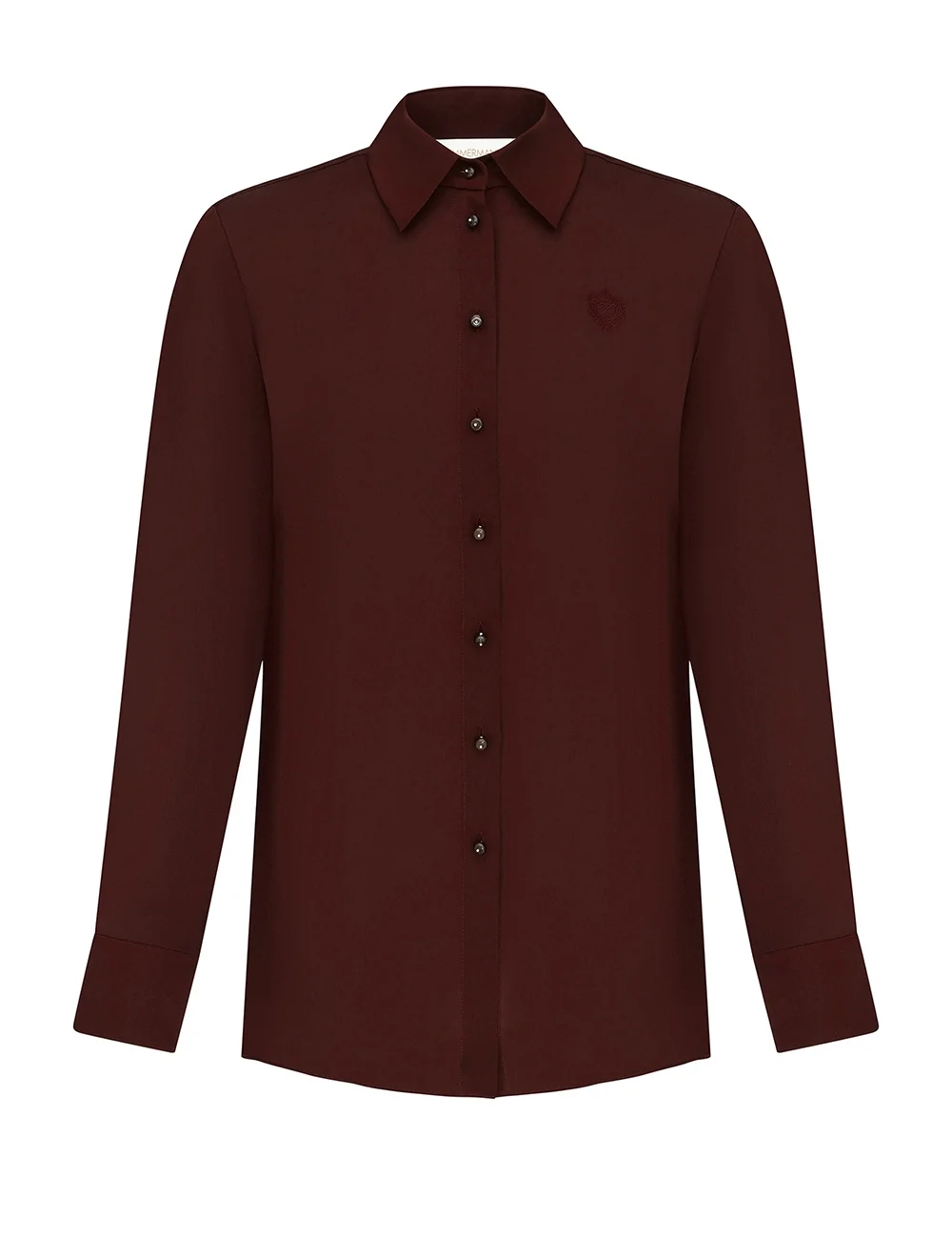ITEM DETAILS The Luna Satin Shirt in Wine from our Spring 2026 Collection, Kindred Spirit. A silk shirt featuring long sleeves, embroidery detailing and a classic collar. - 100% silk fabric - Relaxed silhouette style shirt - Buttons down the centre front and on the cuffs - Embroidery detail on the breast Style Code: 8920TS261 SIZE DETAILS 0P 0 1 2 3 4 Length 26 27.5 27.5 28 28.5 28.5 Bust 41.5 42.5 45 46.5 49 50.5 Sleeve 20 21.5 21.5 22 22 22.5 Relaxed fit Light-weight, non-stretchy fabric This garment fits true to size Available in size 0P, suited to clients who are under 5'3"/ 160cm Model is 5'9.5"/178 cm, bust size 32C/10C and wears a size 0 Item measurements are in inches CARE INSTRUCTIONS Main: 100% silk Dry clean only code f (hydrocarbon only); Remove any detachable trims prior to dry cleaning; Cover to protect trim; Iron in low temperature with protective cloth; Light steam only; Do not spot clean Always check the label or care card for specific care instructions.