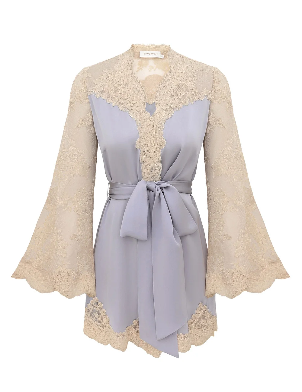 ITEM DETAILS The Luna Satin Wrap Top in Powder Blue from our Spring 2026 Collection, Kindred Spirit. A silk top featuring a wrap silhouette with a fluid hem, long sleeves, finished with a plunging V-neckline and lace trim throughout. - Silk fabric - V-neckline - Self-tie waist - Long lace sleeves - Scalloped lace trim detailing throughout - Elongated hem - Comes with separate slip Style Code: 8839TS261 SIZE DETAILS 0P 0 1 2 3 4 Length 30.5 32.5 33 33.5 33.5 34 Bust 35.5 38 39.5 41.5 43.5 45.5 Waist 38.5 40 42.5 45 46.5 49 Sleeve 22 23.5 24 24.5 24.5 25 Slightly fitted at the bust and sleeves Light-weight, non-stretchy fabric This garment fits true to size Available in size 0P, suited to clients who are under 5'3"/ 160cm Model is 5'9.5"/178 cm, bust size 32C/10C and wears a size 0 Item measurements are in inches CARE INSTRUCTIONS Main: 100% silk; lace: 100% polyester Dry clean only code f (hydrocarbon only); Remove any detachable trims prior to dry cleaning; Cover to protect trim; Iron in low temperature with protective cloth; Light steam only; Do not spot clean Always check the label or care card for specific care instructions.