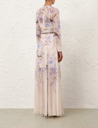 ITEM DETAILS The Luna Sheath Dress in Blue Songbird from our Spring 2026 Collection, Kindred Spirit. A long sleeve maxi dress featuring a high round neckline, centre back invisible zip closure, removable scarf waist belt, finished with a pleated skirt. - Full-length dress - Crew neckline with beaded trim - Long fitted sleeves - Gathered skirt - Invisible zip closure at centre back - Placement printed - Comes with a separate mini slip Style Code: 5177DS261 SIZE DETAILS 0P 0 1 2 3 4 Length 55 60 60 60 60 60.5 Bust 32.5 34.5 36 38.5 40 42.5 Waist 29 30.5 32.5 34.5 36 38.5 Hip 41.5 45 47 49 51 53 Sleeve 27 29 30 30.5 30.5 31.5 Fitted at the bust and sleeves, relaxed through the skirt Light-weight, non-stretchy fabric This garment fits true to size Available in size 0P, suited to clients who are under 5'3"/ 160cm Model is 5'9.5"/178 cm, bust size 32C/10C and wears a size 0 Item measurements are in inches CARE INSTRUCTIONS Main: 100% viscose; belt: 100% silk; slip: 86% recycled polyester, 14% elastane Main: Dry clean only code f (hydrocarbon only); Remove any detachable trims prior to dry cleaning; Cover to protect trim; Iron in low temperature with protective cloth; Light steam only; Do not spot clean Slip: Gentle cold hand wash separately with mild detergent; Do not bleach; Dry in shade; Iron in low temperature with protective cloth; Do not tumble dry; Dry cleanable code f (hydrocarbon only); Always check the label or care card for specific care instructions.