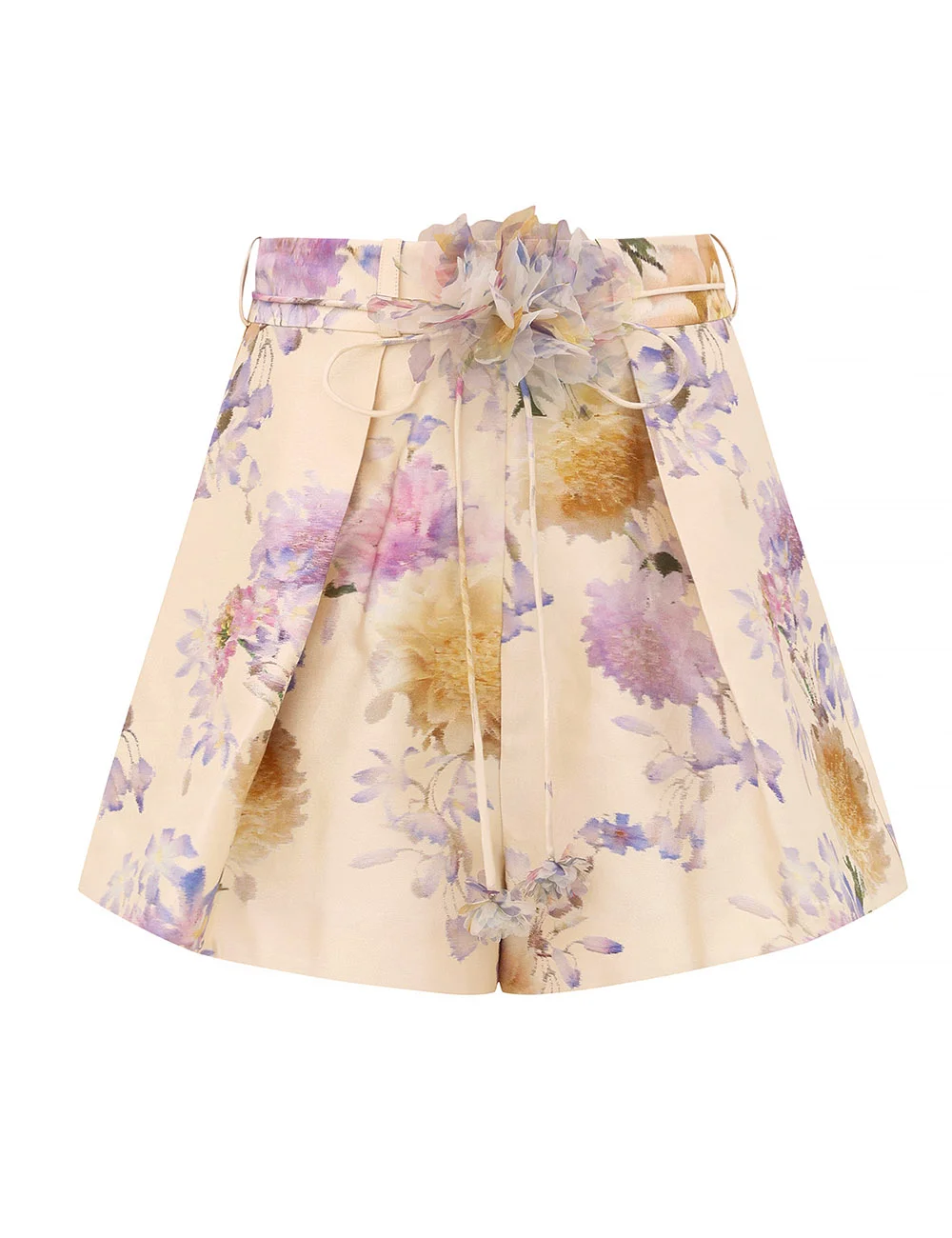ITEM DETAILS The Luna Tuck Short in Cream Dahlia from our Spring 2026 Collection, Kindred Spirit. A high-waisted silk-cotton short featuring a removable rouleau flower belt and flared hem. - Silk-cotton blend fabric - High-rise waist - Pintucks through the front legs - Rouleau waist belt with soft flower - Side seam pockets - Invisible centre back zip - Fully lined Style Code: 7922AS261 SIZE DETAILS 0P 0 1 2 3 4 Length 11.5 12 12.5 13 13 13.5 Waist 25 26 28.5 30.5 32.5 34.5 Inseam 2.5 2.5 2.5 2.5 2.5 2.5 Fitted at the waist, relaxed through the legs Mid-weight, non-stretchy fabric This garment fits true to size Available in size 0P, suited to clients who are under 5'3"/ 160cm Model is 5'9.5"/178 cm, bust size 32C/10C and wears a size 0 Item measurements are in inches CARE INSTRUCTIONS Main: 53% silk, 47% cotton; lining: 100% viscose Dry clean only code f (hydrocarbon only); Remove any detachable trims prior to dry cleaning; Cover to protect trim; Iron in low temperature with protective cloth; Light steam only; Do not spot clean Always check the label or care card for specific care instructions.