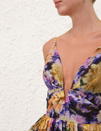 ITEM DETAILS The Luna V Neck Mini Dress in Navy Dahlia from our Spring 2026 Collection, Kindred Spirit. A silk-linen organza mini dress featuring a plunging V-neckline, adjustable straps, finished with a shirred back bodice and flare style skirt. - Silk-linen blend fabric - V-wire neckline - Boning at side seam of bodice - Adjustable straps for versatile fit - Shirred elastic across back with invisible zip closure - Raffia trim at hem - Lined, flare style skirt Style Code: 4398DS261 SIZE DETAILS 0P 0 1 2 3 4 Length 22 23.5 23.5 24 24.5 25 Under bust 24.5 25 27.5 30 31.5 34 Waist 24.5 25 27.5 30 31.5 34 Fitted bodice, relaxed through the skirt Due to the boning structure, the bodice may feel restrictive Light-weight, non-stretchy fabric This garment fits true to size Available in size 0P, suited to clients who are under 5'3"/ 160cm Model is 5'9.5"/178 cm, bust size 32C/10C and wears a size 0 Item measurements are in inches CARE INSTRUCTIONS Main: 55% linen, 45% silk; lining: 100% cotton Dry clean only code f (hydrocarbon only); Remove any detachable trims prior to dry cleaning; Cover to protect trim; Iron in low temperature with protective cloth; Light steam only; Do not spot clean Always check the label or care card for specific care instructions.