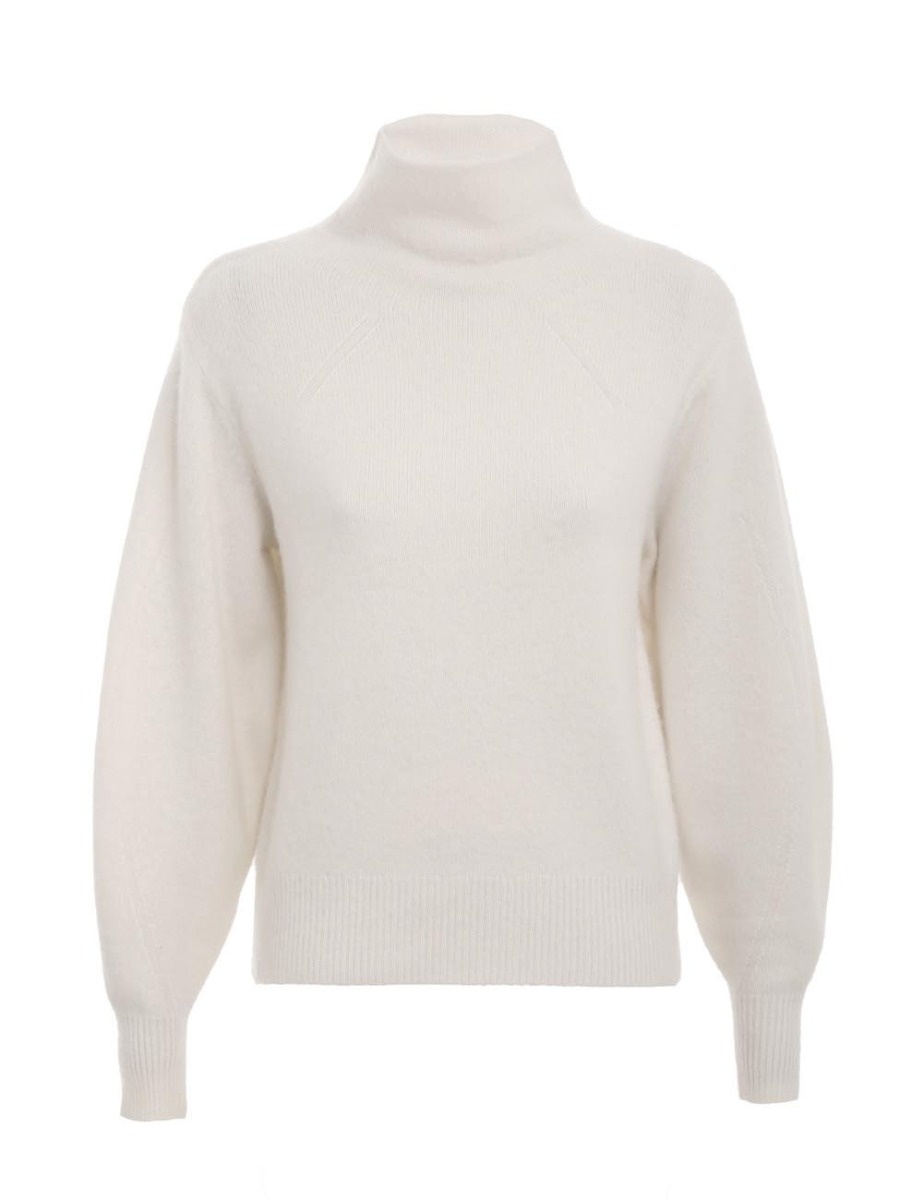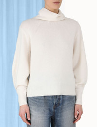 ITEM DETAILS The Lyrical Brushed Wool Sweater in Cream from our Fall 2023 Collection, Luminosity. A brushed wool sweater featuring a roll neck and ribbed edges throughout. - Merino and cashmere blend yarn - Ribbed cuffs and hem - Brushed texture Style Code: 8104TF232 SIZE DETAILS 0P 0 1 2 3 Length 52 56 56 57 58 Bust 88 94 98 104 110 Sleeve 52 56 57 58 58 Relaxed fit This garment fits true to size Available in size 0P, suited to clients who are under 5'3"/ 160cm Model is 5'9.5"/178 cm, bust size 32C/10C and wears a size 0 Item measurements have been rounded to the nearest cm.