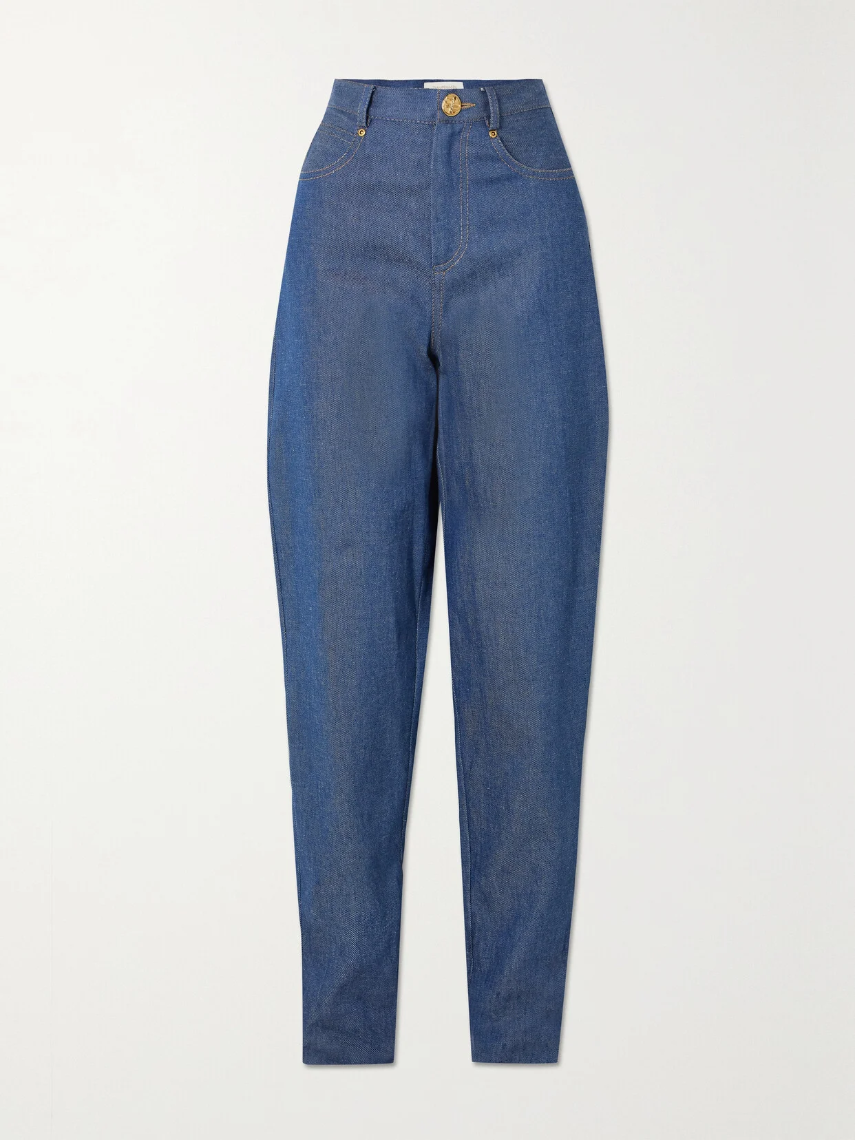 Zimmermann's jeans are part of its '50s-inspired 'Matchmaker' collection. Designed to sit high on the waist, they're cut from blue denim and fall to era-appropriate barrel legs. Mirror the runway styling by wearing yours with a printed blouse and sparkling sandals.