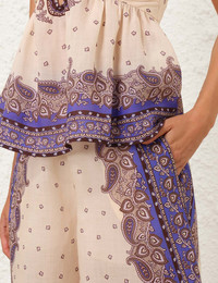 ITEM DETAILS The Maxine Wide Leg Cropped Pant in Purple Paisley from our Resort Swim 2025 Collection. A ramie wide leg pant featuring a fixed waistband, side seam pockets and an invisible centre back zip. - Ramie wide leg pant - Fixed waistband - Side seam pockets - Gathered back into waistband - Invisible centre back zip Style Code: 1760PRS254 SIZE DETAILS 0P 0 1 2 3 4 Length 85 93 94 94 95 96 Waist 90 95 100 105 110 115 Fitted through the waist, relaxed through hips and legs This garment fits true to size Available in size 0P, suited to clients who are under 5'3"/ 160cm Model is 5'9.5"/178 cm, bust size 32C/10C and wears a size 0 Item measurements have been rounded to the nearest cm CARE INSTRUCTIONS Main: 100% ramie, lining: 100% cotton Dry clean code f (hydrocarbon only), inside out in a protective bag; Remove detachable trims and accessories prior to cleaning; Cover to protect hardware; Cool iron with protective cloth; Do not spot clean; Always check the label or care card for specific care instructions.