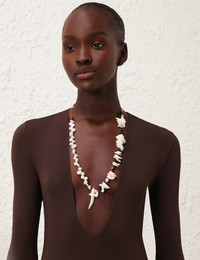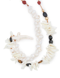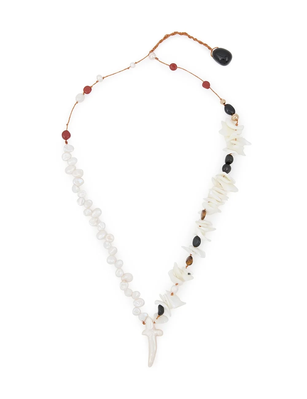 ITEM DETAILS The Mellow Pearl Beaded Necklace in Gold/Multi from our Spring 2025 Collection, Illumination. A beaded shell necklace featuring natural Tiger's Eye, Black Agate, Red Jasper and Freshwater Pearl stones throughout. - Twisted rope - 12KT gold plated brass beads - Natural Tiger's Eye, Black Agate, Red Jasper and Freshwater Pearl stones - Custom self stone clasp Style Code: 3700XS25A1 SIZE DETAILS One size. CARE INSTRUCTIONS 35% freshwater pearls 30% trochus seashell 10% tigers eye 10% black agate 5% red jade 5% polyester 5% brass Zimmermann jewellery is made from 12kt gold-plated brass and freshwater pearls Please remove during exercise, showering, or swimming Avoid contact with perfumes, acetones, creams, and water to prevent damage or discoloration Each piece is unique with natural variations Clean with a soft, lint-free clothavoid cleaning products Store in a cool, dry place, away from sunlight and heat Always check the label or care card for specific care instructions.