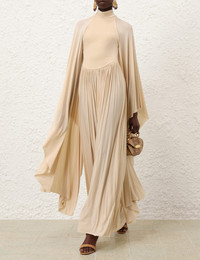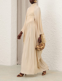 ITEM DETAILS The Memento Batwing Maxi Dress in Cream from our Fall 2025 Collection, Hypnotic. A velvet maxi gown featuring a high neckline, fitted bodice, batwing sleeves and a heavily pleated skirt. - Maxi-length dress - Long, exaggerated asymmetrical sleeves - Heavily gathered - Drop style skirt - Invisible zip closure at centre back Runway: This style was featured on the F25 Runway. Style Code: 5562DF252 SIZE DETAILS 0P 0 1 2 3 4 Length 53.5 58.5 58.5 58.5 59 59 Bust 25 27.5 29 31.5 33 35.5 Waist 21.5 22 24.5 26 28.5 30 Sleeve 23 25 25 25.5 26 26.5 Fitted through the bodice, relaxed throughout This garment fits true to size Available in size 0P, suited to clients who are under 5'3"/ 160cm Model is 5'9.5"/178 cm, bust size 32C/10C and wears a size 0 Item measurements are in inches CARE INSTRUCTIONS Main: 90% viscose, 10% elastane; contrast: 95% polyester, 5% elastane Dry clean only code f (hydrocarbon only); Remove any detachable trims prior to dry cleaning; Cover to protect trim; Do not steam; Cool iron with protective cloth; Do not spot clean Always check the label or care card for specific care instructions.