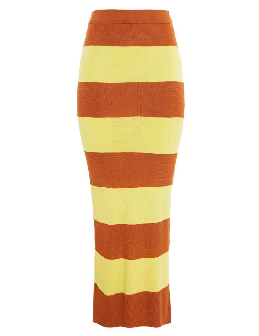 ITEM DETAILS The Midi Skirt in Chartreuse/Mink Stripe from our Spring 2023 Collection, Wonderland. A midi skirt featuring contrast stripes. - Midi skirt - Slip on style - Elastic waist Style Code: 6689SRWON STYLING Style the Midi Skirt with the Crew Neck Top and Stretch Knee Boot 85 for a fun look for an outing with friends, or pair with the Wide Leg Jeans for an easy daytime look. Wear this style with the Wavy Sandal 85, Popcorn Chain Necklace, Tangled Rope Cocktail Ring and Crew Neck Top by ZIMMERMANN SIZE DETAILS 0P 0 1 2 3 Length 82 82 90 90 90 Waist 58 62 66 72 76 This garment fits true to size, we recommend you select your normal size. Fitted. Available in size 0P, specially designed with petite proportions that are suited to clients who are under 5'3""/ 160cm. Our model is 5'9.5"" / 178 cm, bust size 32C/10C and is wearing a size 0. CARE INSTRUCTIONS 100% viscose Exclusive of trims Gentle cold hand wash separately with mild detergent Do not bleach Do not soak, wring or rub Do not tumble dry Dry flat inside out, away from direct sunlight Cool iron on reverse Store garment flat, do not hang Dry cleanable code f Always check the garment care label for specific care instructions.