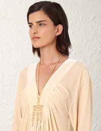 ITEM DETAILS The Zimmermann Midnight Pendant in Gold from our Spring 2024 Collection, Natura. A chain necklace featuring a gold pendant with cubic zirconia stones. - 12KT gold plated brass - White cubic zirconia - T-bar clasp Style Code: 5546S24 SIZE DETAILS One size. CARE INSTRUCTIONS Jewellery care Zimmermann jewellery is produced in 12kt gold-plated brass. Please remove when exercising, showering or swimming. Avoid contact with perfumes, acetones, hand and body creams and water as they may cause damage or discolouring. Clean your jewellery carefully with a soft, non-abrasive, lint-free cloth to remove dirt and dust. Do not use cleaning products. Store in a cool, dry place to prevent damage. Keep away from direct sunlight and heat. Always check the care card for specific care instructions.