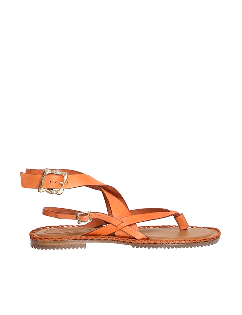 ITEM DETAILS The Multi-Strap Sandal Flat in Orange from our Summer Swim 2023 Collection. A flat thong sandal featuring leather straps and contrast artisan stitching throughout. - Made in Spain - Flat thong sandal - Ankle strap with buckle fastening - Serrated rubber sole Style Code: 4650S23 SIZE DETAILS This shoe fits true to size, we recommend you select your normal size. CARE INSTRUCTIONS 100% calf leather upper Leather care This item was hand crafted using genuine leather. Leather can alter or stain if in contact with humidity or atmospheric agents. Marks or irregularities in natural hides can appear in even the most luxurious skins. These are naturally occurring features and should not be thought of as imperfections. On occasion leather can stain clothing or other objects it comes into contact with. To maintain in best condition, avoid direct exposure to light and heat, water, oils, perfume and cosmetics and store at room temperature.