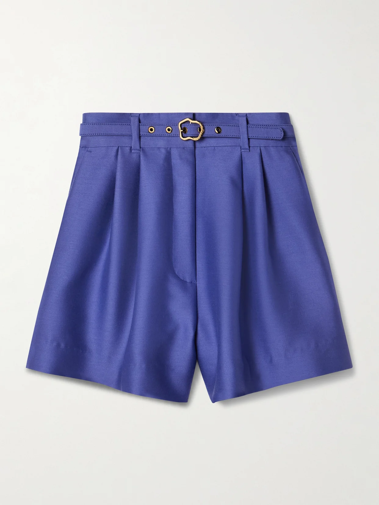 Zimmermann's shorts are designed in a vibrant shade of 'Lapis' - it matches the lush florals splashed all over shirts from the same 'Natura' collection. Tailored from wool and silk-blend, they have a high-rise waist threaded with a detachable belt and sharp pleats that emphasize the wide-legs. Match your jewelry to the gold buckle.