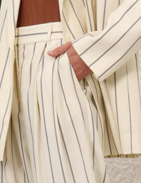 ITEM DETAILS The Natura Cropped Barrel Pant in Navy/Cream Stripe from our Spring 2024 Collection, Natura. A linen blend striped pant featuring a tailored silhouette with front pockets and belt loops. - Linen blend pant - Tailored fit - Internal jigger button - Belt loops - Functional pockets Style Code: 1110PS241 SIZE DETAILS 0P 0 1 2 3 Length 92 100 101 101 102 Waist 66 70 74 80 84 Hip 94 100 104 110 114 Fixed high waist Straight fit through hips and legs This garment fits true to size Available in size 0P, suited to clients who are under 5'3"/ 160cm Model is 5'9.5"/178 cm, bust size 32C/10C and wears a size 0 Item measurements have been rounded to the nearest cm CARE INSTRUCTIONS Main: 55% linen 42% viscose 3% elastane Lining: 75% viscose 25% silk Exclusive of trims Dry clean only code f (hydrocarbon) with protective bag Cool iron with protective cloth Light steam only Do not spot clean Turn garment inside out before dry cleaning Always check the care label for specific care instructions.