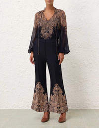 ITEM DETAILS The Natura Flare Pant in Navy Paisley from our Spring 2024 Collection, Natura. A linen pant featuring a flared silhouette and front pockets. - Linen pant - Flared leg - Zipper at front opening - Belt loops - Front pockets Style Code: 7004PS241 SIZE DETAILS 0P 0 1 2 3 4 Length 86 94 95 95 96 97 Waist 70 74 78 84 88 94 Hip 90 96 100 106 112 116 Fitted at the waist This garment fits true to size Available in size 0P, suited to clients who are under 5'3"/ 160cm Model is 5'9.5"/178 cm, bust size 32C/10C and wears a size 0 Item measurements have been rounded to the nearest cm CARE INSTRUCTIONS Main: 100% linen Lining: 100% cotton Exclusive of trims Dry clean only code f (hydrocarbon) with protective bag Cool iron with protective cloth Light steam only Do not spot clean Turn garment inside out before dry cleaning Always check the care label for specific care instructions.