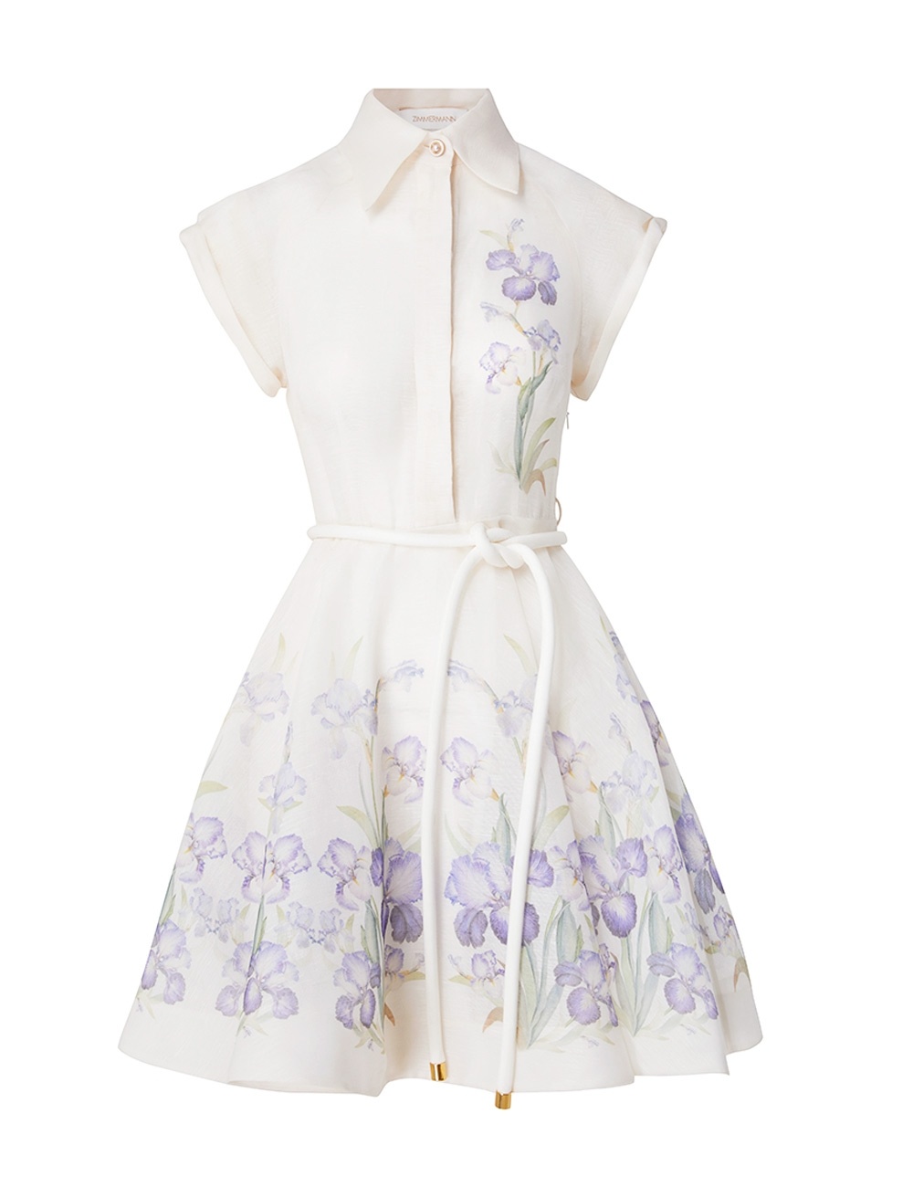 ITEM DETAILS The Natura Flip Dress in Blue Iris from our Spring 2024 Collection, Natura. A silk linen mini dress featuring a shirt shaped bodice and full mini skirt, finished with raglan sleeves with stitched cuffs. - Silk linen mini dress - Crinoline hem - Invisible zip on left side - Side seam pockets - Self cover buckle belt with rouleau belt loops - Concealed buttons down centre front Style Code: 9145DS241 SIZE DETAILS 0P 0 1 2 3 4 Length 80 86 87 88 90 92 Bust 86 90 96 100 106 110 Waist 66 68 74 78 84 88 Sleeve 27 27 28 29 30 31 Fitted across bodice and waist Relaxed through hips and skirt This garment fits true to size Available in size 0P, suited to clients who are under 5'3"/ 160cm Model is 5'9.5"/178 cm, bust size 32C/10C and wears a size 0 Item measurements have been rounded to the nearest cm CARE INSTRUCTIONS Main: 53% linen 47% silk Contrast 1: 100% polyester Contrast 2: 100% silk Lining: 100% cotton Exclusive of trims Remove belt before dry cleaning Dry clean only code f (hydrocarbon) with protective bag Cool iron with protective cloth Light steam only Do not spot clean Cover and protect hardware Turn garment inside out before dry cleaning Do not dry clean belt Always check the care label for specific care instructions.
