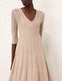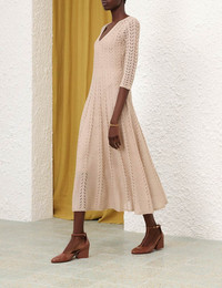 ITEM DETAILS The Natura Knit Lace Dress in Natural from our Spring 2024 Collection, Natura. A lace long sleeve dress featuring a plunging V-neckline and a full skirt. - Knit midi dress - 3/4 sleeve length - Slip on style Style Code: 9338DS241 SIZE DETAILS 0P 0 1 2 3 Length 110 119 20 121 121 Bust 70 76 80 86 90 Waist 58 64 68 74 78 Hip 90 96 100 106 110 Sleeve 40 42 43 43 44 Fitted This garment fits true to size Available in size 0P, suited to clients who are under 5'3"/ 160cm Model is 5'9.5"/178 cm, bust size 32C/10C and wears a size 0 Item measurements have been rounded to the nearest cm. CARE INSTRUCTIONS 76% viscose 24% elastane Exclusive of trims Gentle cold hand wash separately with mild detergent Do not bleach Do not soak, wring or rub Do not tumble dry Dry flat inside out, away from direct sunlight Cool iron on reverse Dry cleanable Always check the garment care label for specific care instructions.