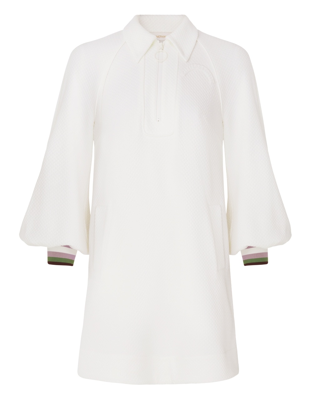 ITEM DETAILS The Natura Textured Jersey Dress in Ivory from our Spring 2024 Collection, Natura. A long sleeve jersey dress featuring a classic collar and blouson sleeves. - Textured jersey mini dress - Long sleeve with ribbed cuffs - Concealed front placket - Side seam pockets - Slip on style Style Code: 1175DS241 SIZE DETAILS 0P 0 1 2 3 Length 77 83 83 85 87 Bust 86 92 96 102 106 Hip 102 106 112 116 122 Sleeve 68 72 73 74 75 Relaxed fit This garment fits true to size Available in size 0P, suited to clients who are under 5'3"/ 160cm Model is 5'9.5"/178 cm, bust size 32C/10C and wears a size 0 Item measurements have been rounded to the nearest cm CARE INSTRUCTIONS Main: 95% polyester, 5% elastane Pocketing: 100% cotton Exclusive of trims Dry clean only code p Do not iron Light steam only Do not spot clean Always check the garment care label for specific care instructions.