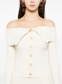Rebellion cardigan Highlights - Ivory - Front-button fastening - Off-shoulder - Short slit sleeves Imported Composition Viscose 79%, Polyester 21% SIZE & FIT Model measurements Height 5 ft 9 in(1.76 m) Bust/Chest 32.28 in(82 cm) Hips 35.82 in(91 cm) Waist 25.59 in(65 cm) Washing instructions Dry Clean Only