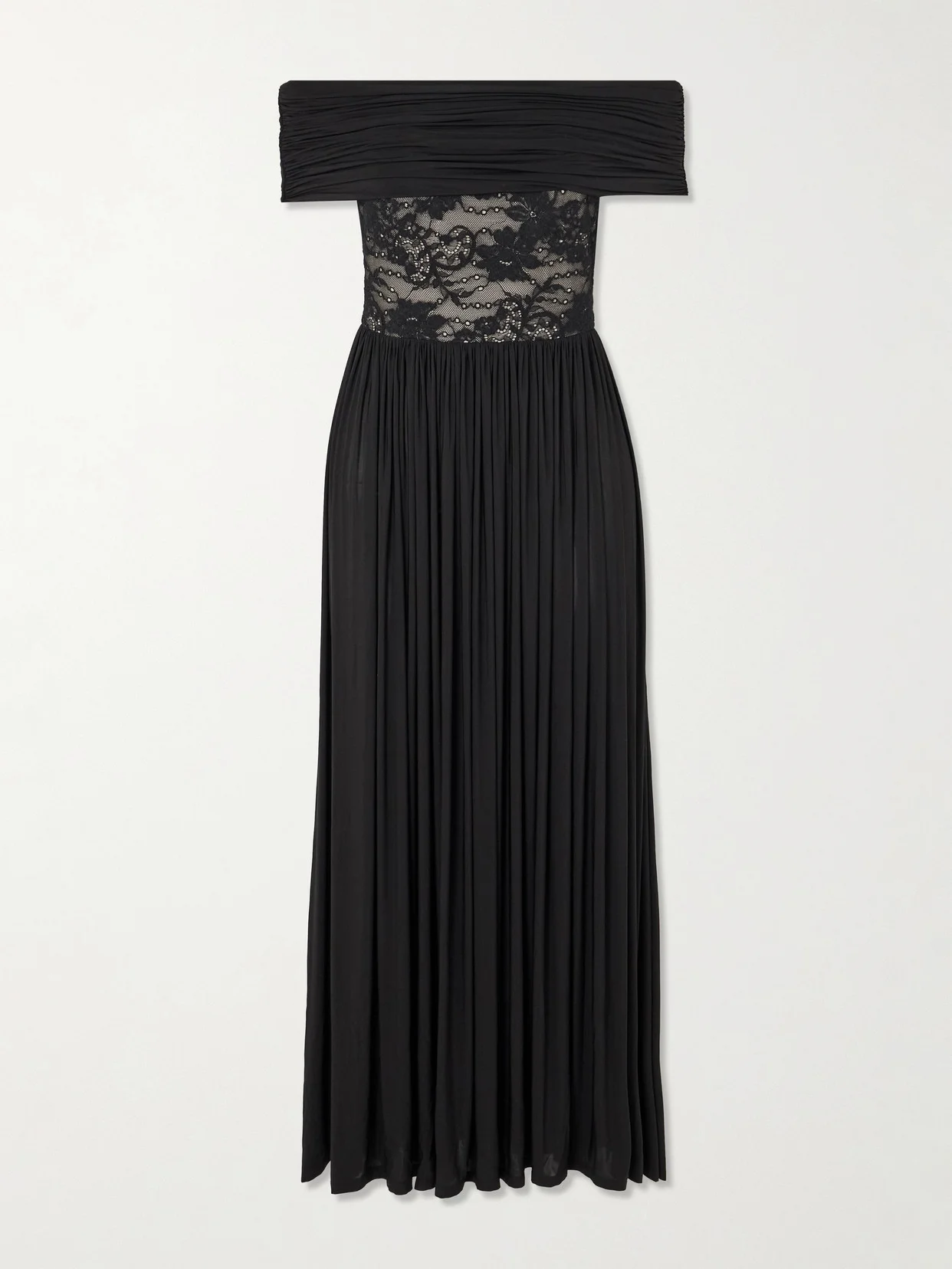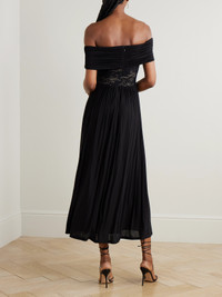Off-the-shoulder Lace-trimmed Gathered Stretch-jersey Maxi Dress