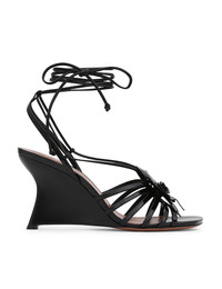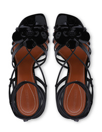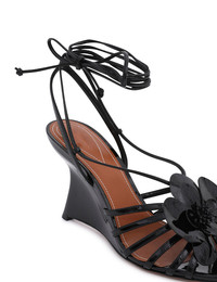 ITEM DETAILS The Orchid Wedge 85 in Black from our Spring 2025 Collection, Illumination. A leather wedge heel featuring a lace-up design with a fixed orchid flower design. - Leather wedge sandal - Made in Italy - Square toe - Orchid flower design - 85mm wedge heel Style Code: 4575FS25A1 SIZE DETAILS This shoe fits true to size. CARE INSTRUCTIONS Lining: 100% leather, outsole-suola: 100% leather, main: 100% leather, contrast: 100% leather Patent leather care:; The high gloss of patent leather may reduce over time. ; To remove scuffs, use a soft pencil eraser, and clean with soapy water and a microfiber cloth. ; Avoid harsh chemicals and direct sunlight. ; Store in the original dust bag, away from heat, never in plastic bag. Always check the label or care card for specific care instructions.