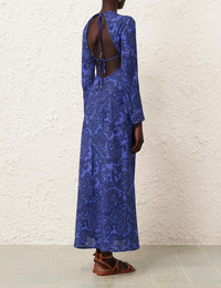 ITEM DETAILS The Ottie Bias Backless Dress in Blue Paisley from our Summer Swim 2024 Collection. A linen long sleeve dress featuring an open back detail. - Linen long sleeve dress - Self tie at back neck - Invisible zip on skirt - High neck - Skirt cut on the bias Style Code: 9299DSS242 SIZE DETAILS 0P 0 1 2 3 4 Length 85 94 94 94 94 94 Bust 86 92 96 102 106 112 Waist 72 76 80 86 90 96 Hip 104 110 114 120 124 130 Sleeve 55 59 60 60 61 61 Slim fit through the body This garment fits true to size Available in size 0P, suited to clients who are under 5'3"/ 160cm Model is 5'9.5"/178 cm, bust size 32C/10C and wears a size 0 Item measurements have been rounded to the nearest cm. CARE INSTRUCTIONS Main: 100% linen Exclusive of trims Dry clean only code p Cool iron Do not spot clean Always check the garment care label for specific care instructions.