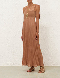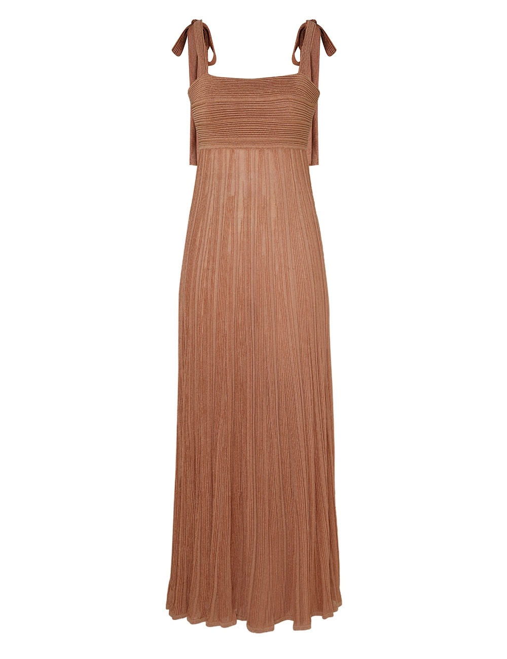 ITEM DETAILS The Ottie Metallic Tie Dress in Rose from our Summer Swim 2024 Collection. A metallic midi dress featuring tie up shoulder straps. - Metallic midi dress - Self tie shoulder straps - Slip on style Style Code: 9707DSS242 SIZE DETAILS 0P 0 1 2 3 Length 101 109 109 109 109 Bust 64 70 74 80 84 Waist 56 62 66 72 76 Hip 64 70 74 80 84 Garment has stretch for an easy fit This garment fits true to size Available in size 0P, suited to clients who are under 5'3"/ 160cm Model is 5'9.5"/178 cm, bust size 32C/10C and wears a size 0 Item measurements have been rounded to the nearest cm. CARE INSTRUCTIONS 87% viscose 13% metallized fibre Exclusive of trims Dry clean only code f (hydrocarbon), inside out with protective bag Cool iron with protective cloth Do not spot clean Store garment flat, do not hang Always check the garment care label for specific care instructions.