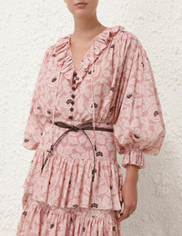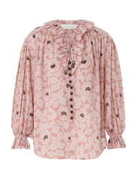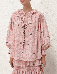 ITEM DETAILS The Ottie Ruffle Neck Top in Dusty Rose Floral from our Summer Swim 2024 Collection. A cotton long sleeve top featuring a ruffled neckline and buttons down the centre front. - Cotton long sleeve top - Elasticated sleeves - Buttons with button loops - Self tie neck tie Style Code: 1007TSS242 SIZE DETAILS 0P 0 1 2 3 Length 28 29.5 29.9 30.3 30.3 Bust 71.7 74 75.6 78 79.5 Sleeve 19.3 20.5 20.5 20.5 20.5 Relaxed fit This garment fits true to size Available in size 0P, suited to clients who are under 5'3"/ 160cm Model is 5'9.5"/178 cm, bust size 32C/10C and wears a size 0 Item measurements are in inches. CARE INSTRUCTIONS Main:100% cotton Exclusive of trims Dry clean only code p with protective bag Cool iron on reverse Turn garment inside out before dry cleaning Do not spot clean Always check the garment care label for specific care instructions.