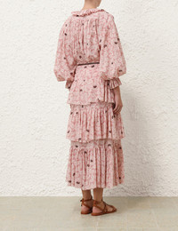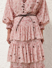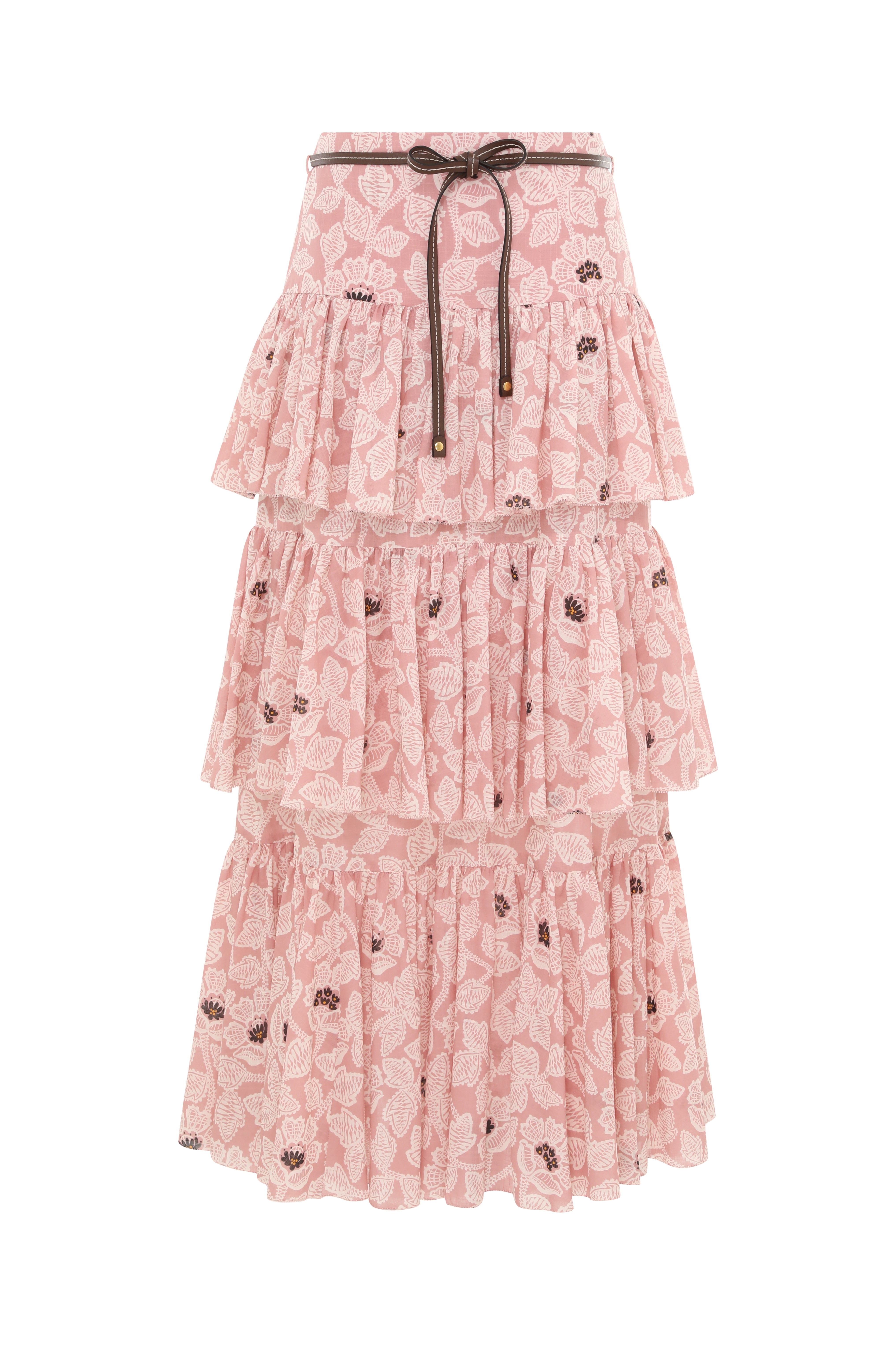 ITEM DETAILS The Ottie Tiered Midi Skirt in Dusty Rose Floral from our Summer Swim 2024 Collection. A cotton midi skirt featuring an all over print and a removable belt. - Cotton tiered midi skirt - Wide waistband - Picot hem trim - Leather belt - Invisible zip at centre back Style Code: 9854SSS242 SIZE DETAILS 0P 0 1 2 3 Length 35 38.2 38.2 38.2 38.2 Waist 25.2 26 28.3 29.9 32.3 Hip 33.9 36.2 37.8 40.2 41.7 Fitted at the waist This garment fits true to size Available in size 0P, suited to clients who are under 5'3"/ 160cm Model is 5'9.5"/178 cm, bust size 32C/10C and wears a size 0 Item measurements are in inches. CARE INSTRUCTIONS Main: 100% cotton Lining: 100% cotton; Exclusive of trims Remove belt before laundering Dry clean only code p Cool iron Do not spot clean Always check the garment care label for specific care instructions.