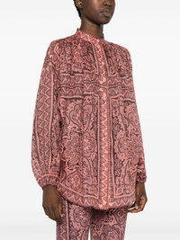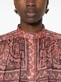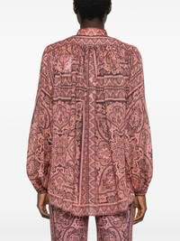 Ottie paisley-print ramie shirt Highlights - Coral pink - Ramie - All-over paisley print - Semi-sheer construction - Band collar - Long puff sleeves with elasticated cuffs - Short side slits - Rear gathered detailing - Curved hem - Front button fastening Imported Composition Ramie 100% SIZE & FIT Model measurements Height 5 ft 11 in(1.8 m) Bust/Chest 32.67 in(83 cm) Hips 36.22 in(92 cm) Waist 24.4 in(62 cm) FittingInformation Designed to be unstructured, offering a loose fit throughout Made from a midweight non-stretch fabric This piece fits true to size – take your usual size Washing instructions Dry Clean Only